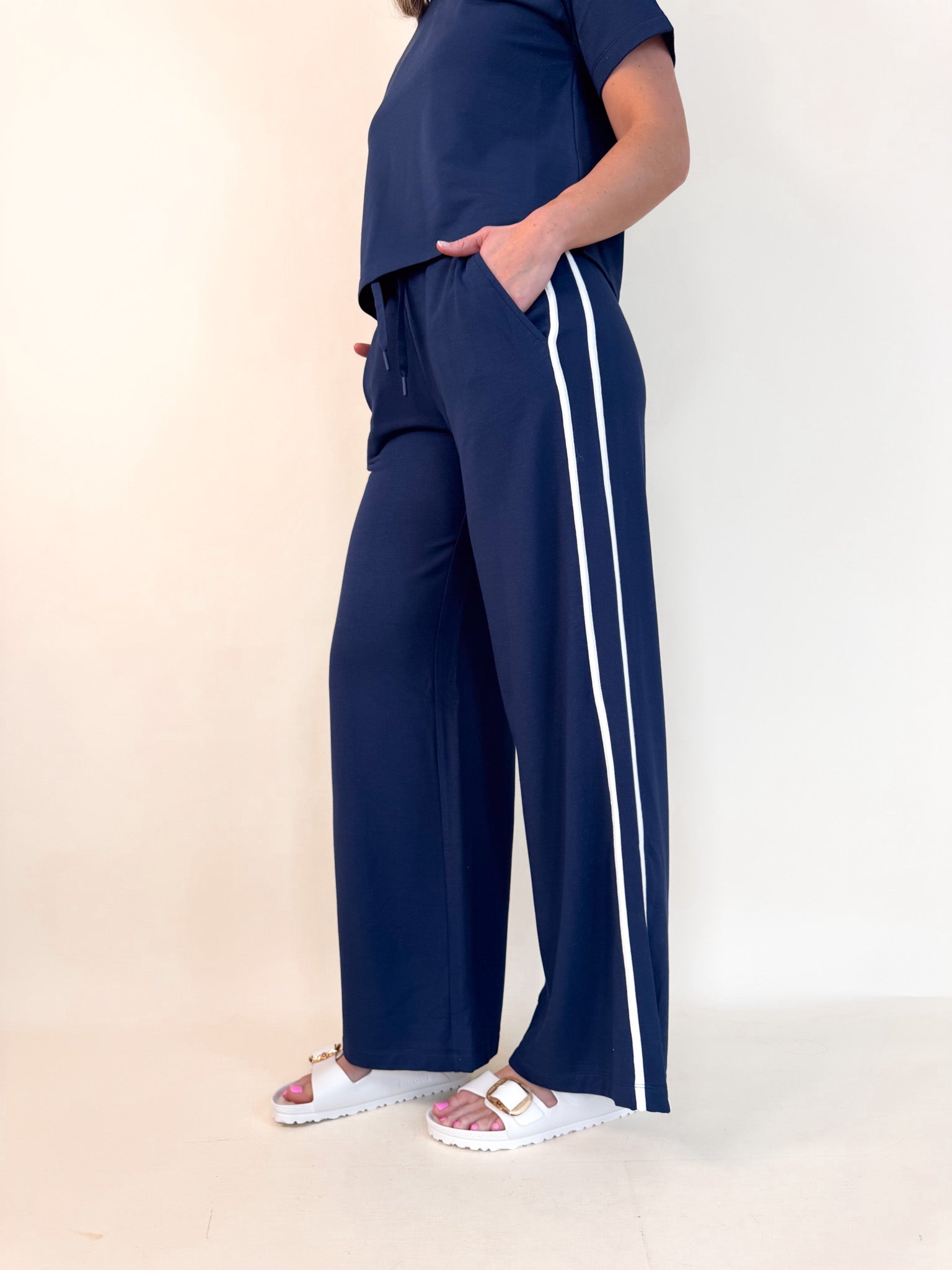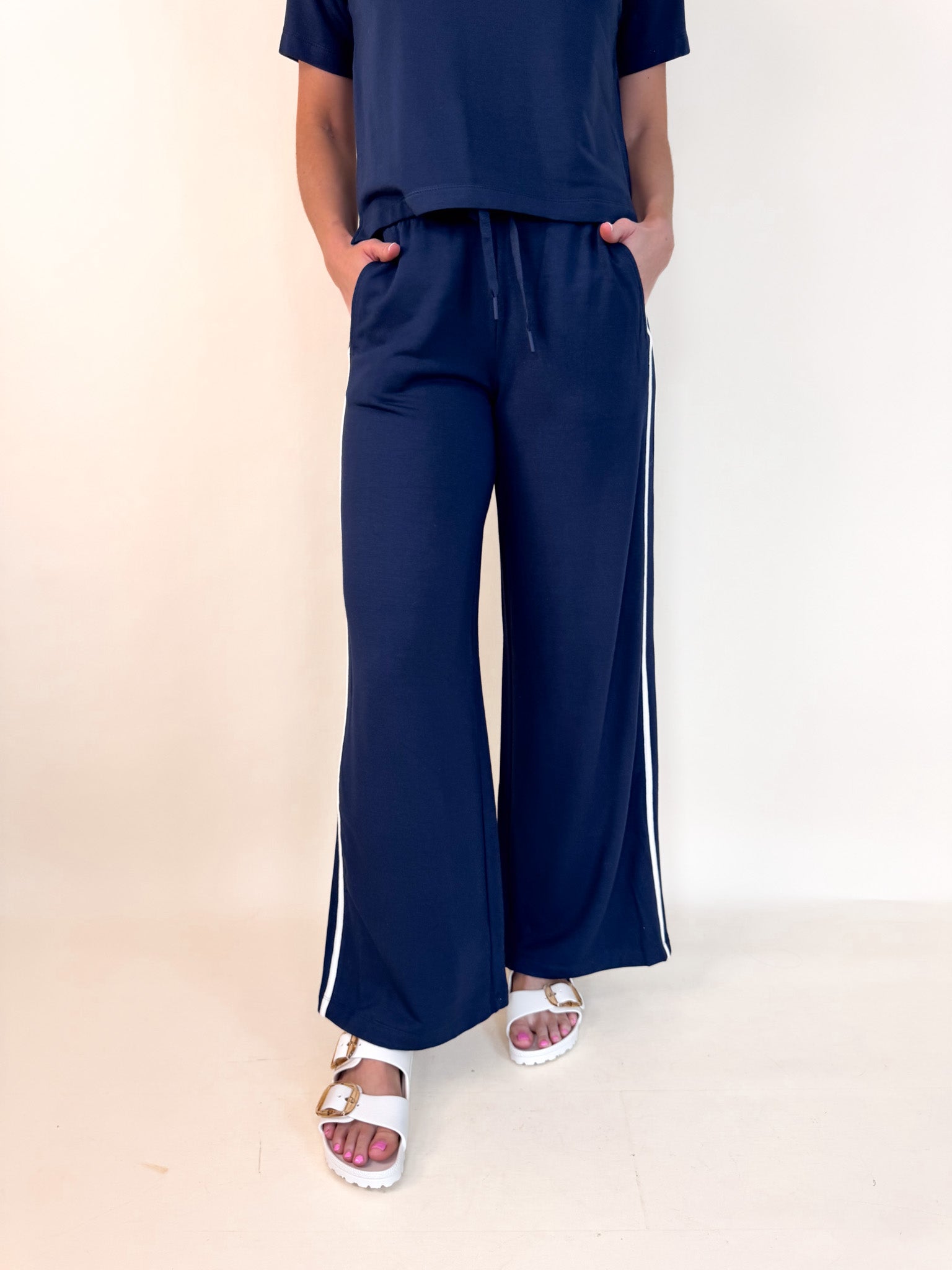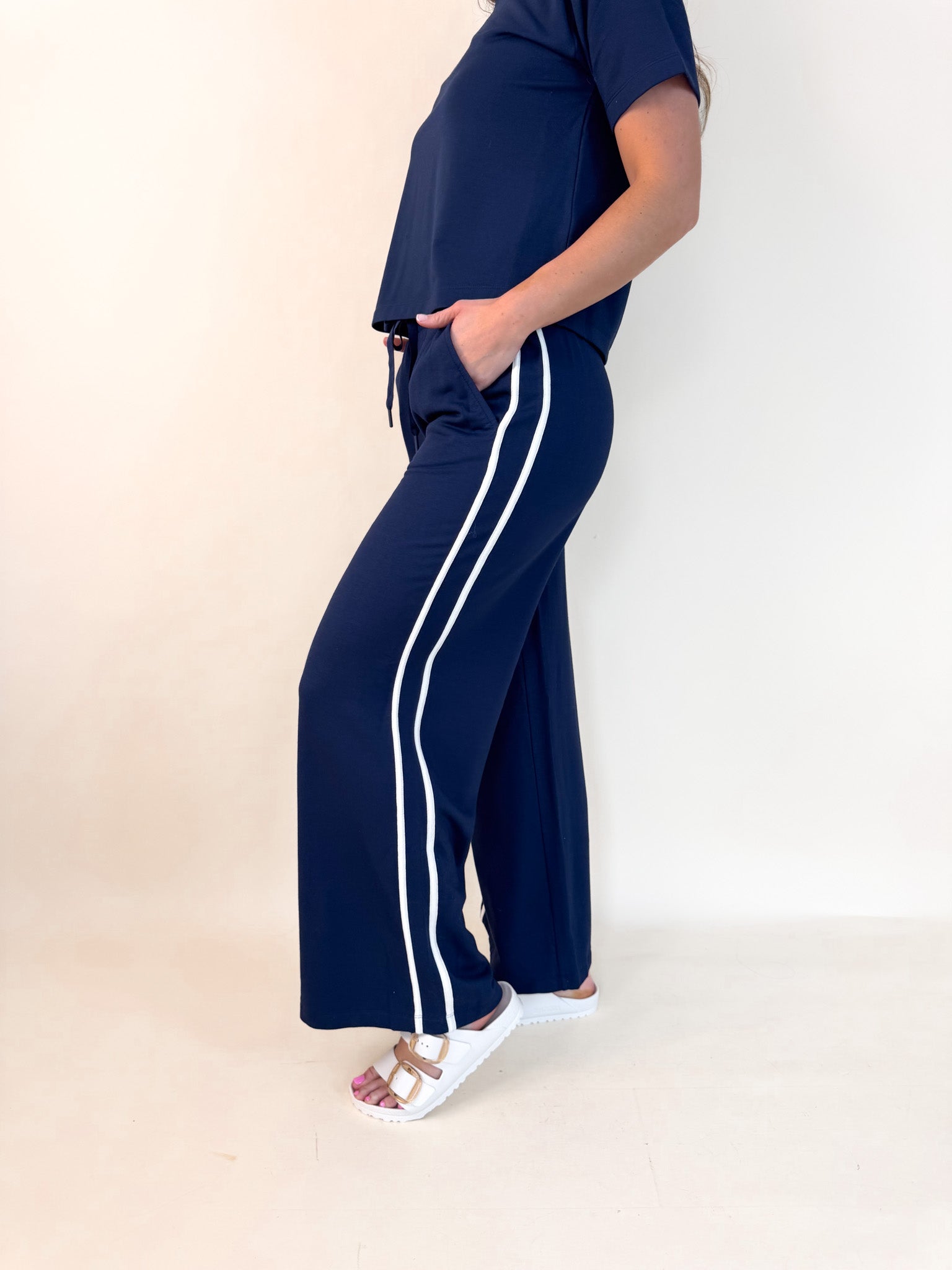 The elevated sweatpant you’ll want wear all day, blending lived-in softness with refined style. Made from our buttery modal fleece, this full-length pant delivers all-day comfort with a refined feel. The high-rise waistband, drawcord tie, and deep patch pockets make it an easy favorite from travel days to nights in.