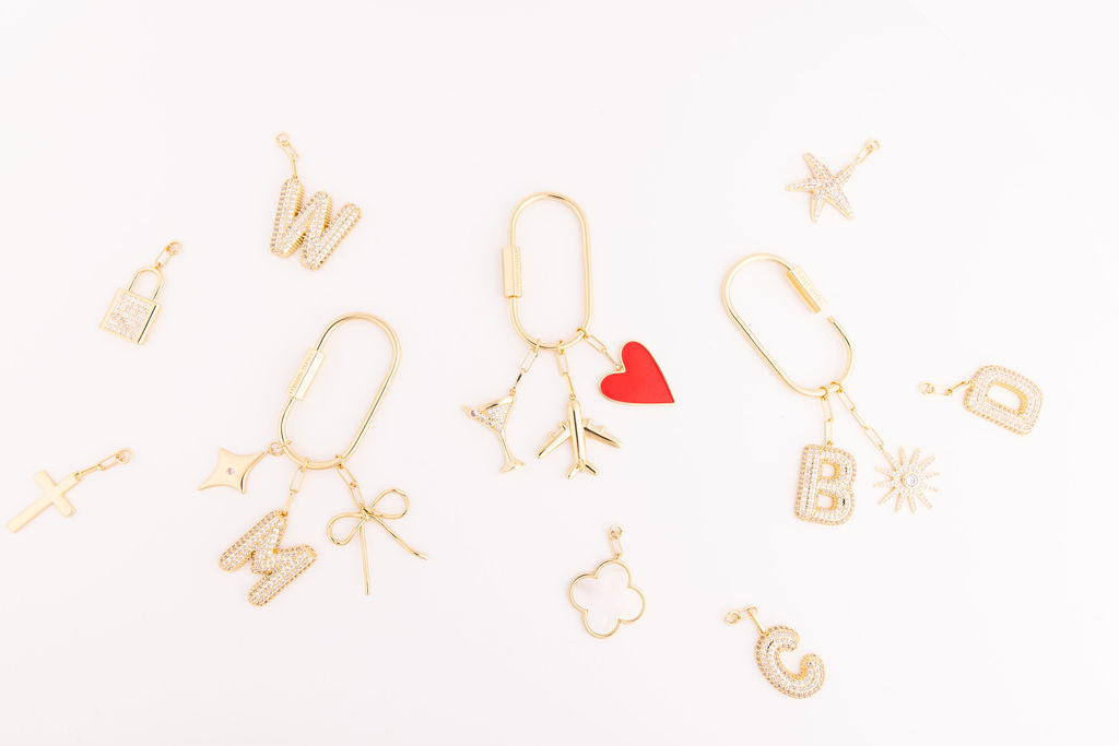 Elevate your handbag or keys with this gold-plated carabiner, perfect for attaching your favorite charms and personalizing your accessories.