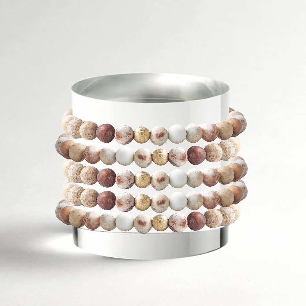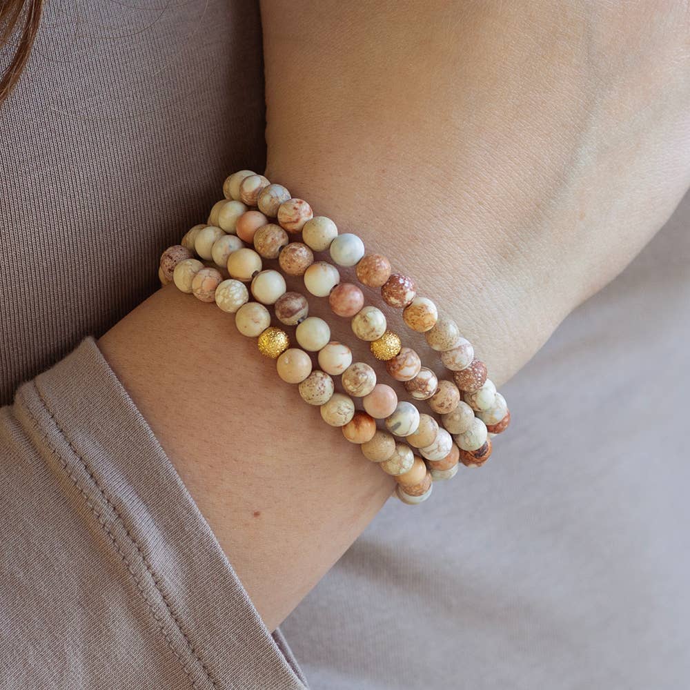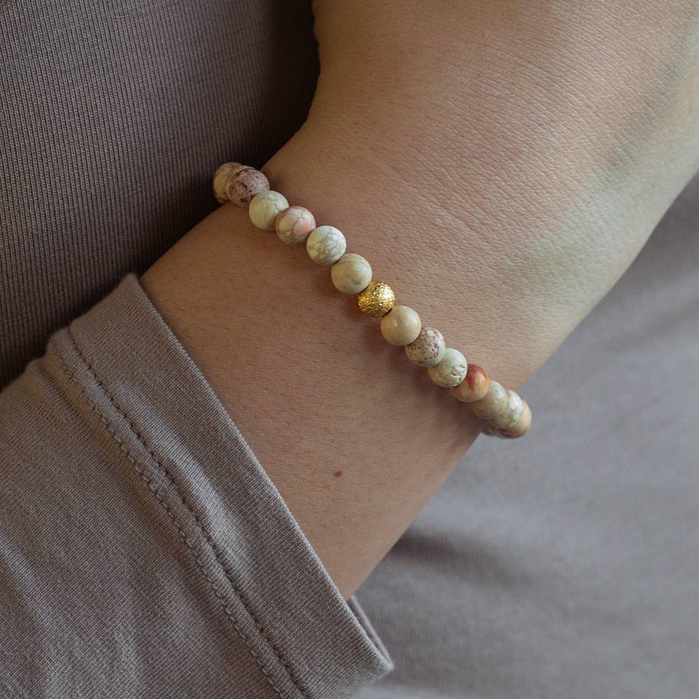 Bring timeless elegance to your look with our White Jasper Stretch Bracelet, featuring smooth, 6mm natural gemstone beads. Known for its calming white tones with subtle gray veining, white jasper offers a clean and versatile style that pairs beautifully with any outfit. The stretch design ensures a comfortable fit for most wrists, making it perfect for layering or wearing solo. Thoughtfully crafted for everyday wear, it’s a piece you’ll treasure for years to come.
