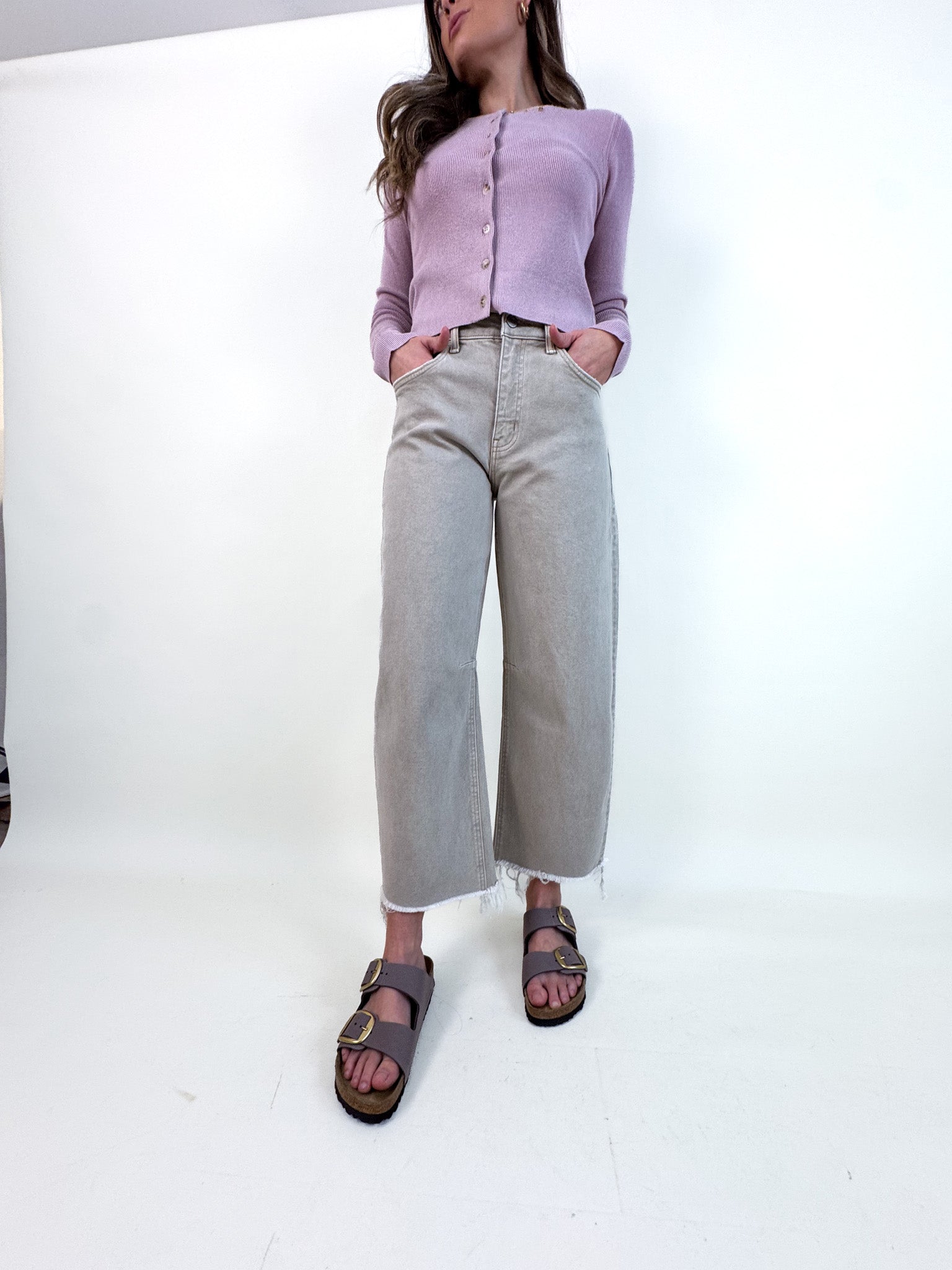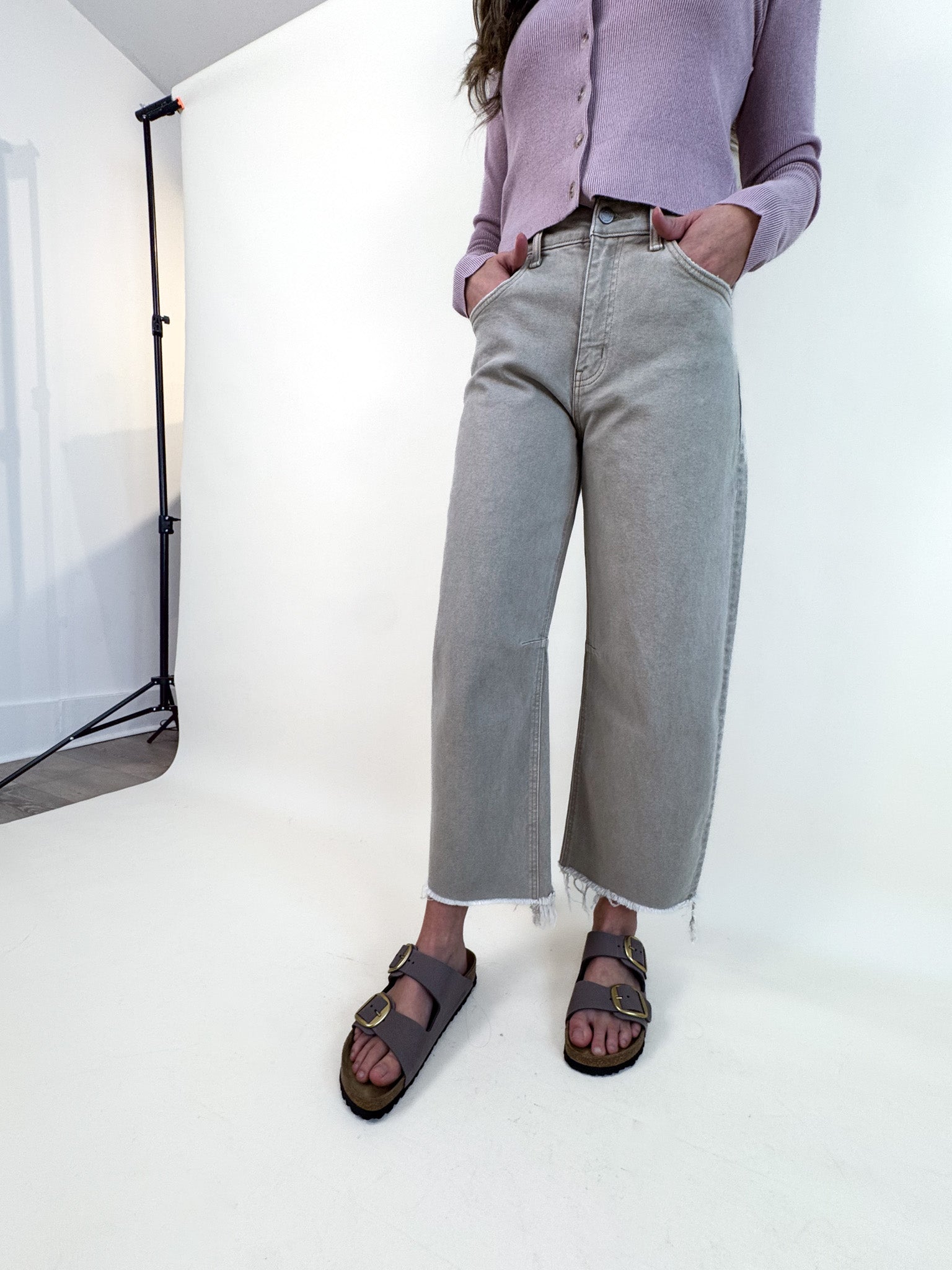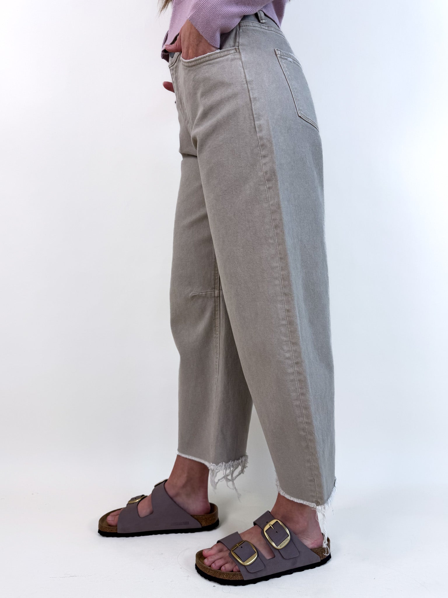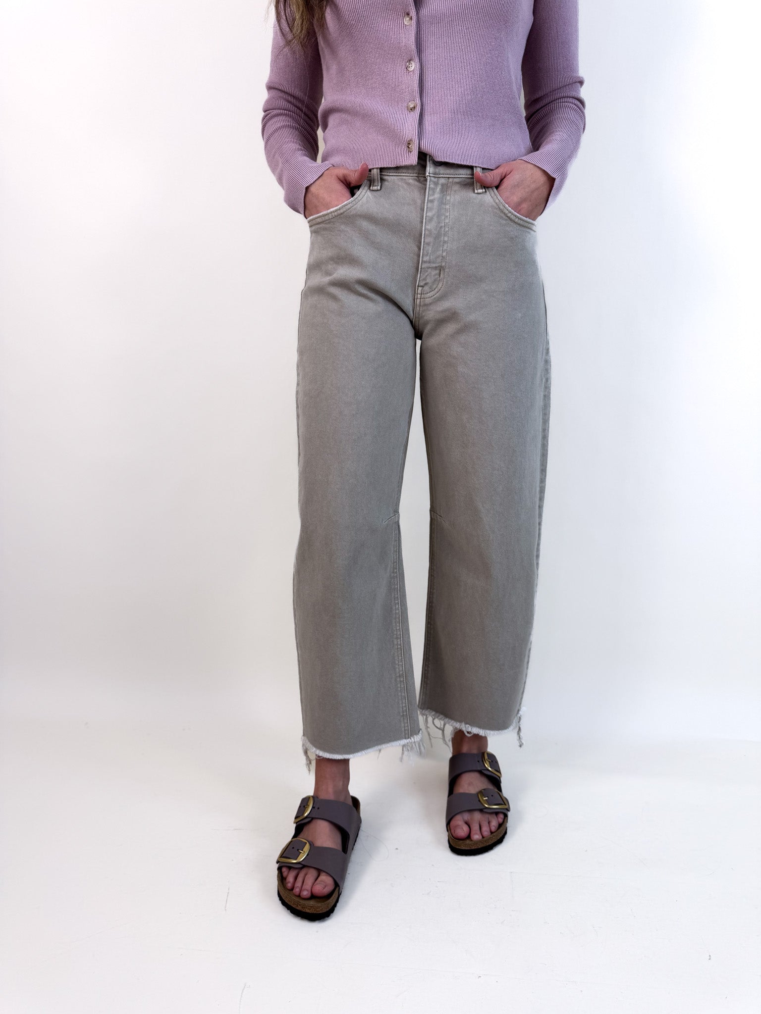 This neutral tone wide leg barrel jean pairs effortlessly with literally any color and any top in your closet!