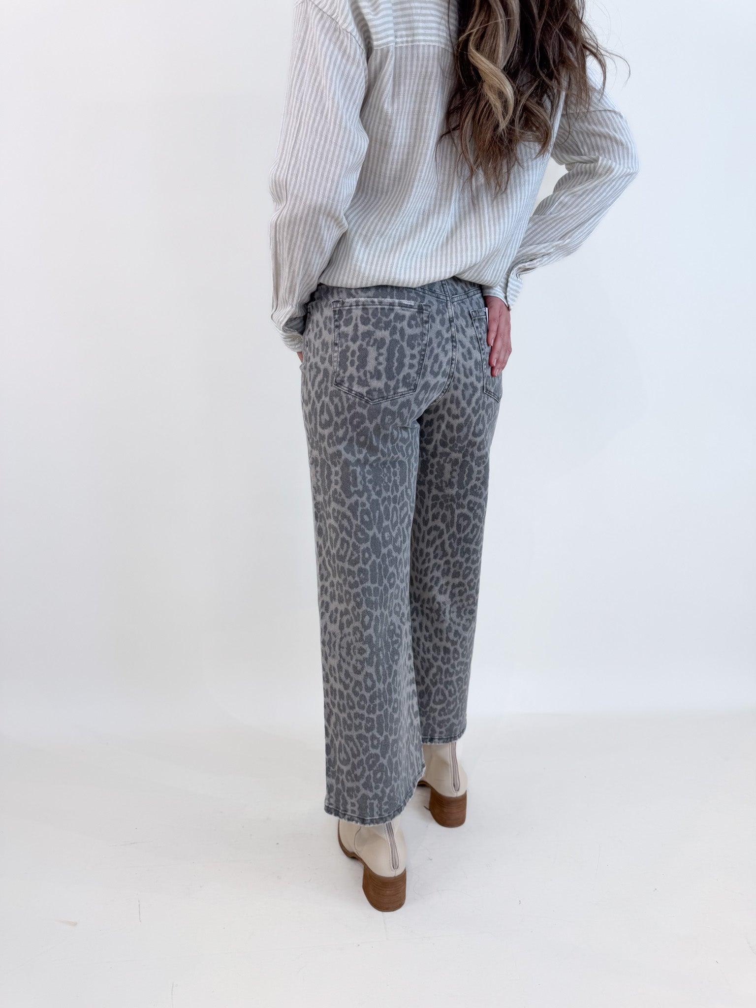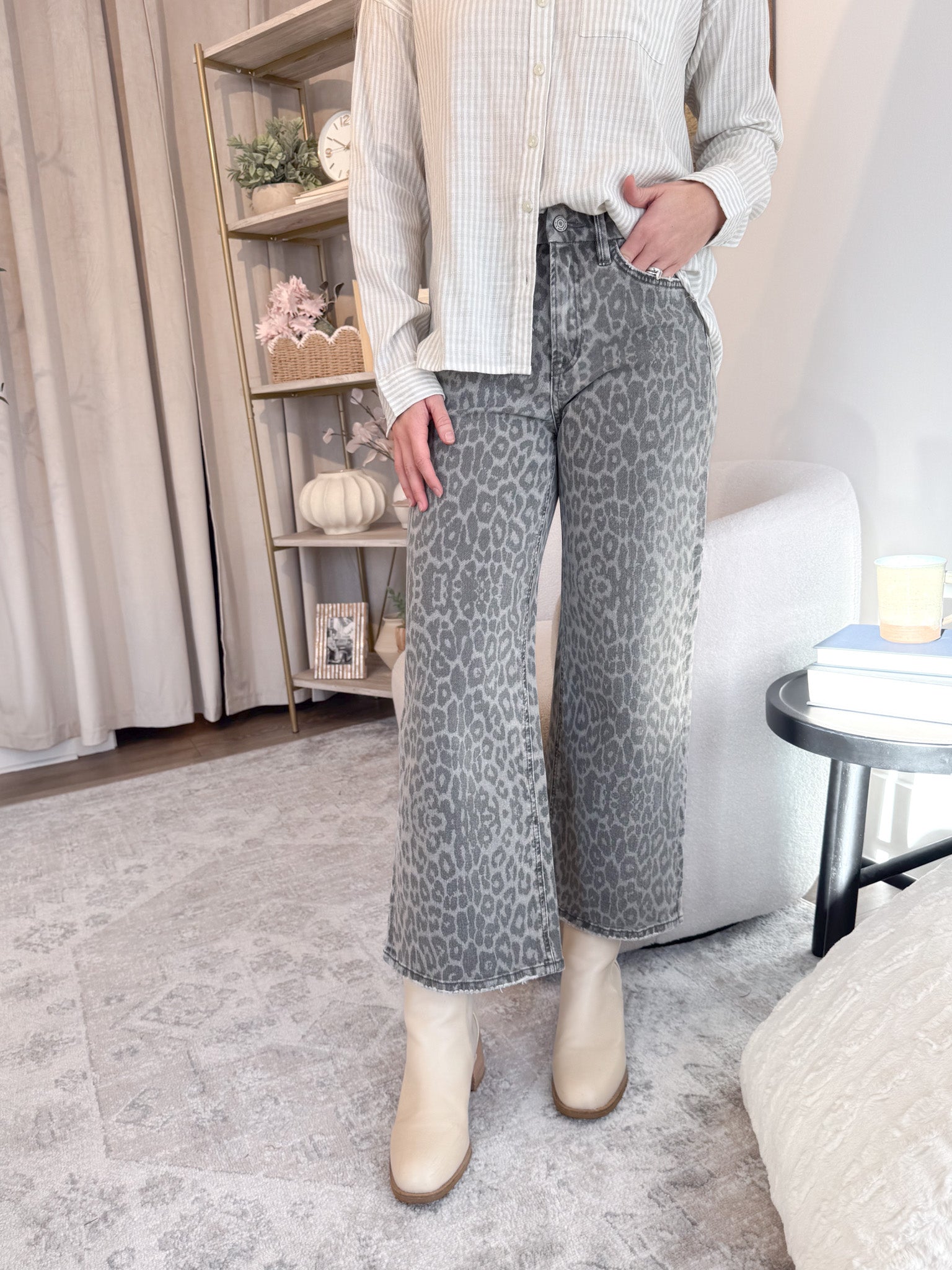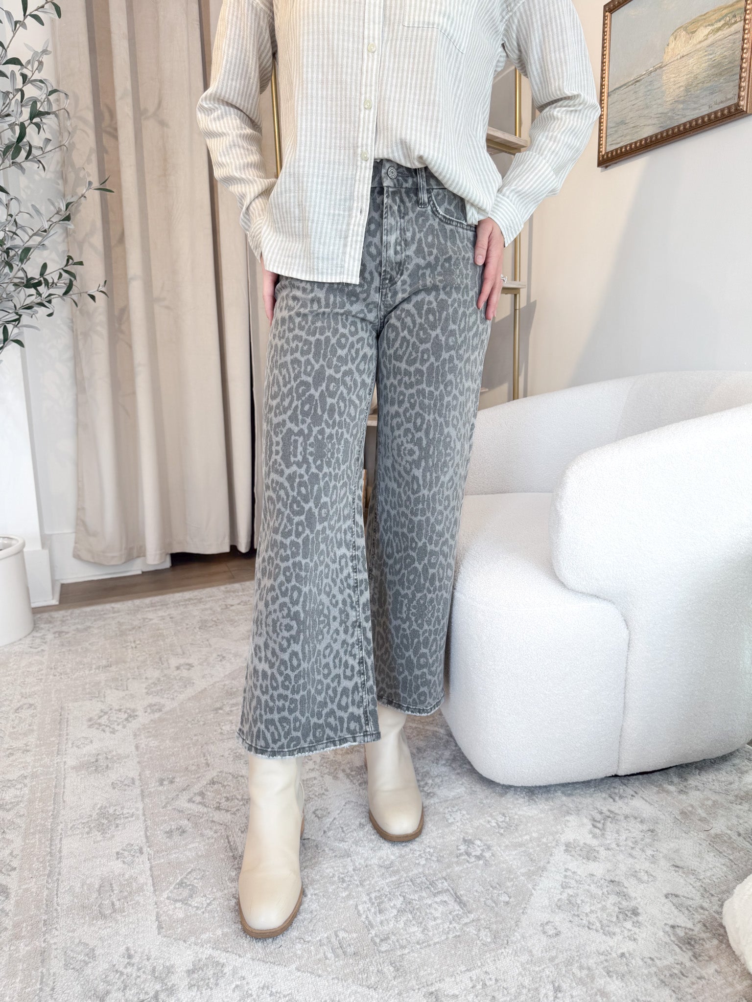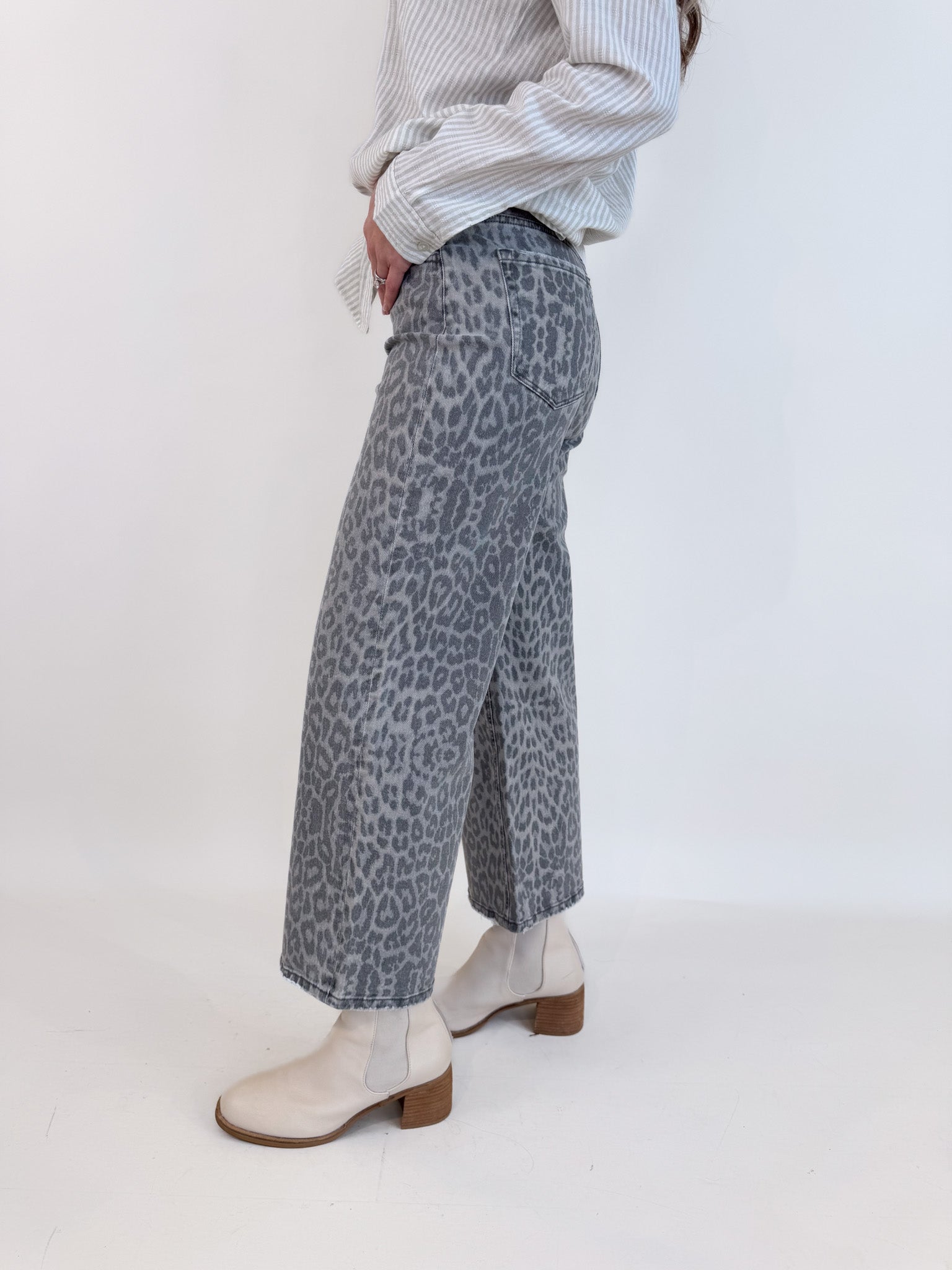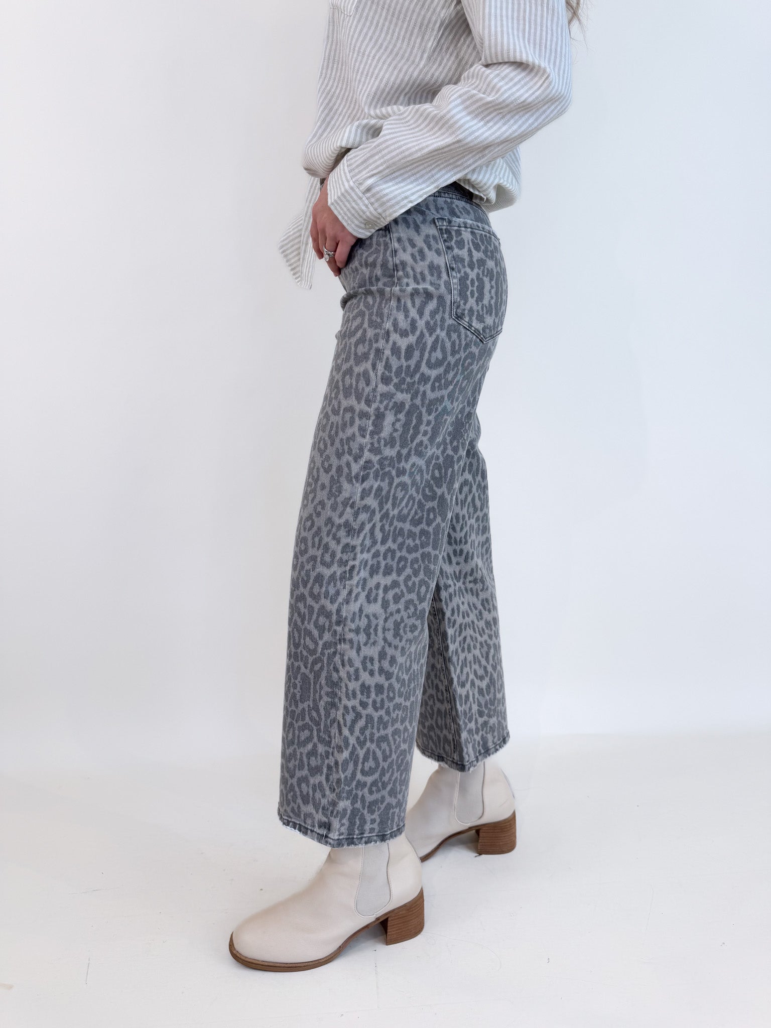 Grey Leopard Crop Denim