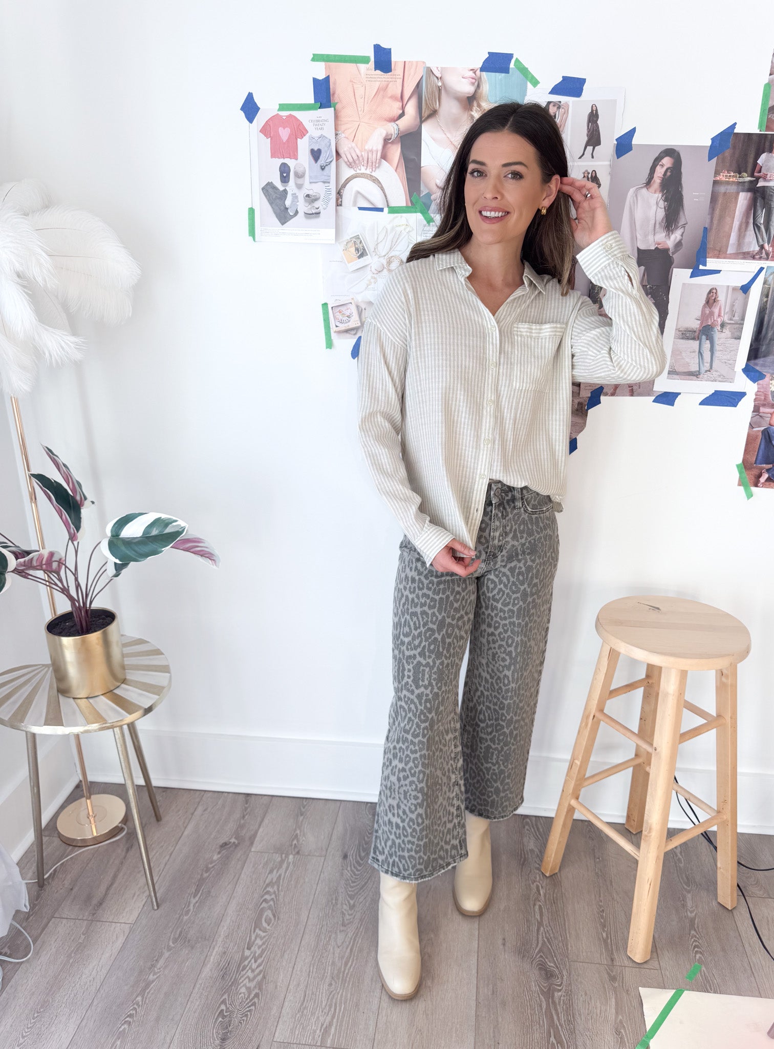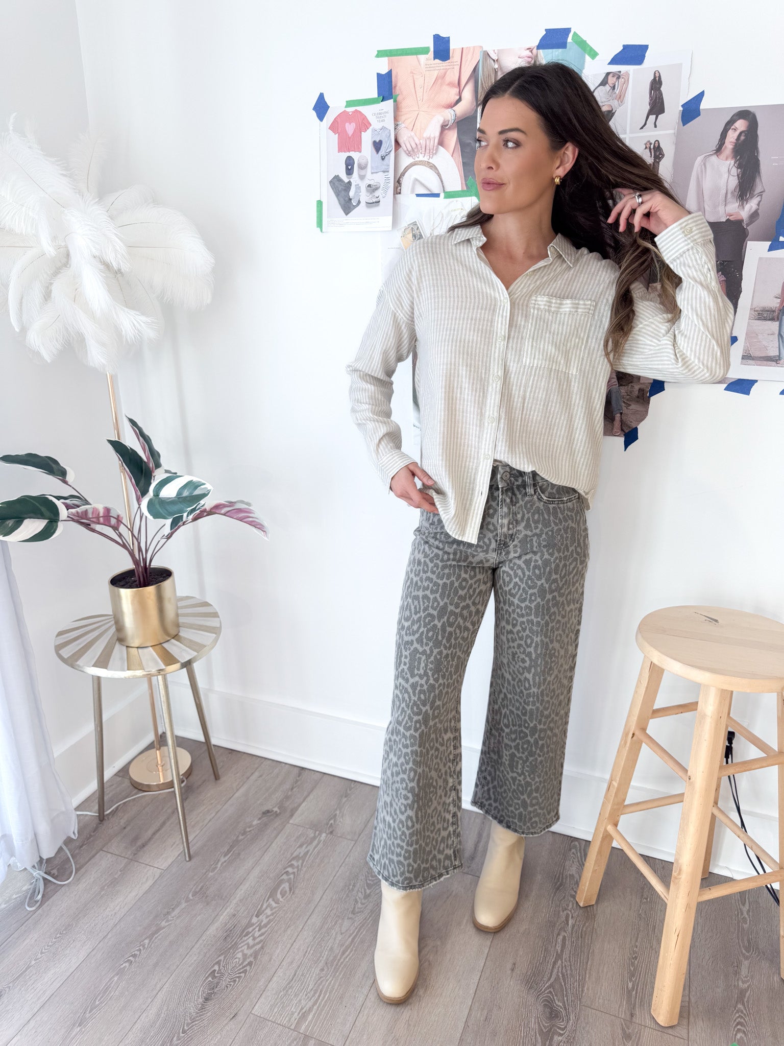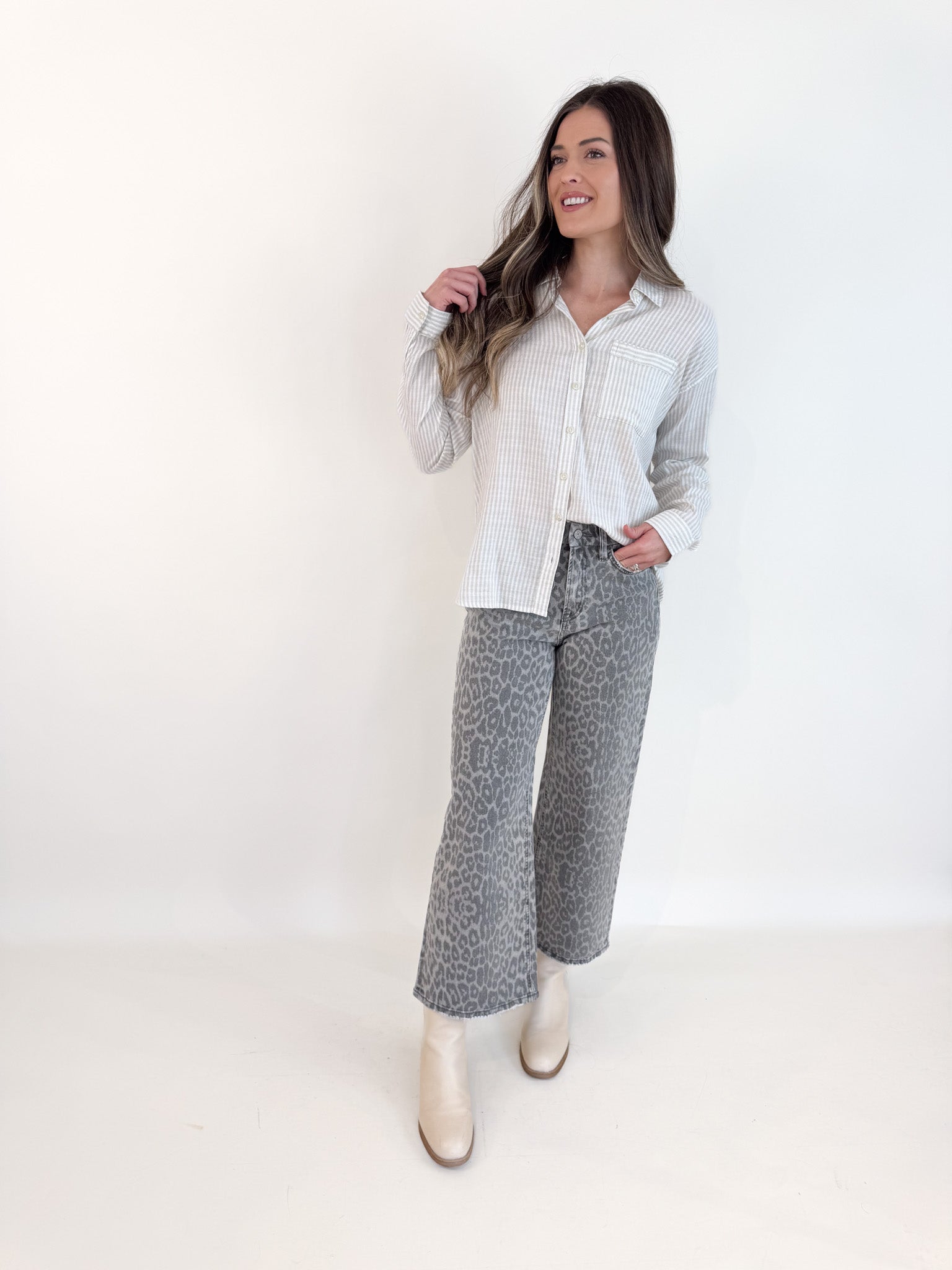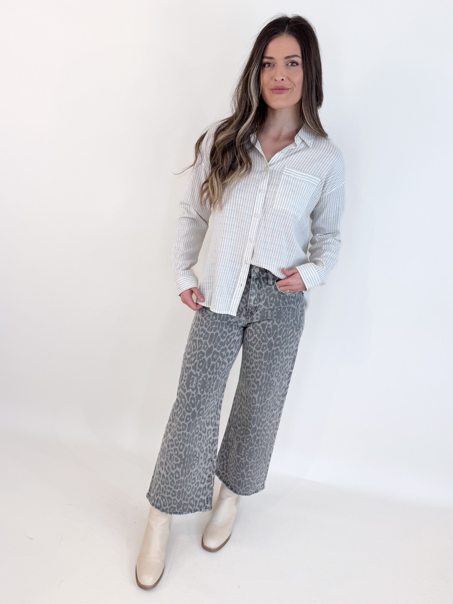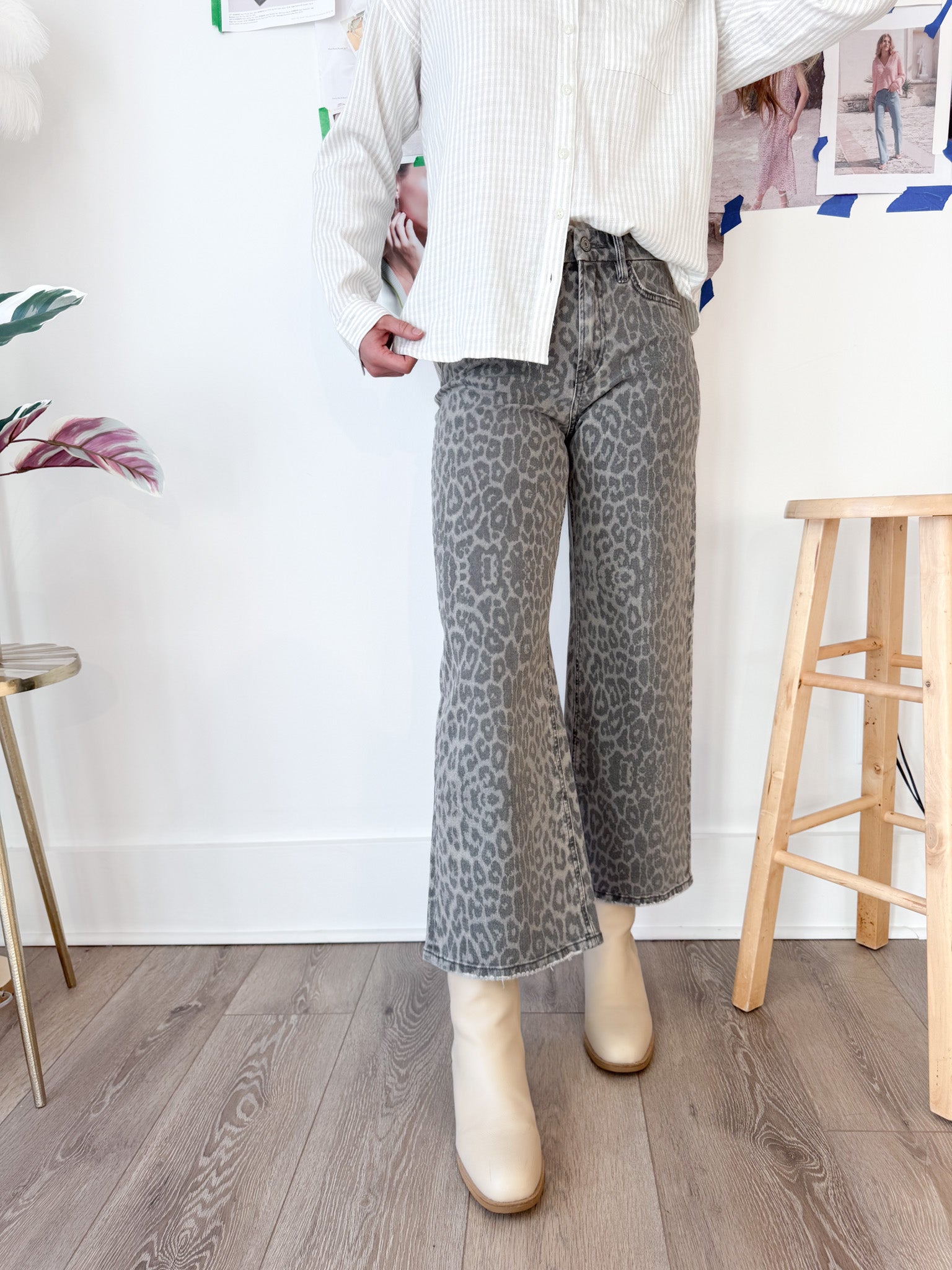 Grey Leopard Crop Denim