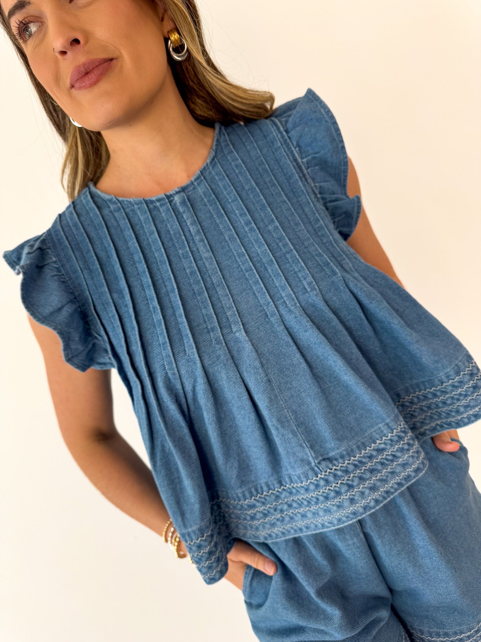 Kasey Denim Short Sleeve Top