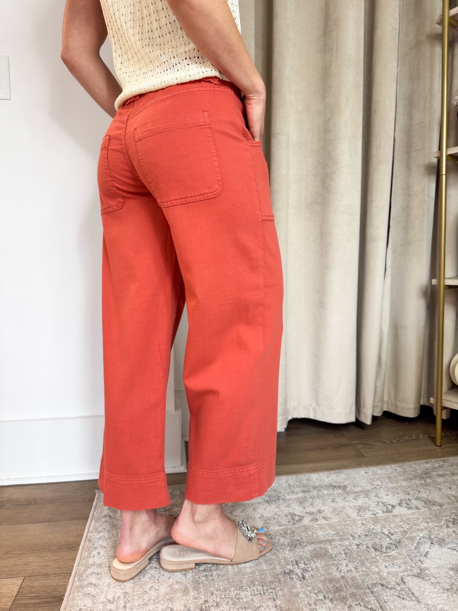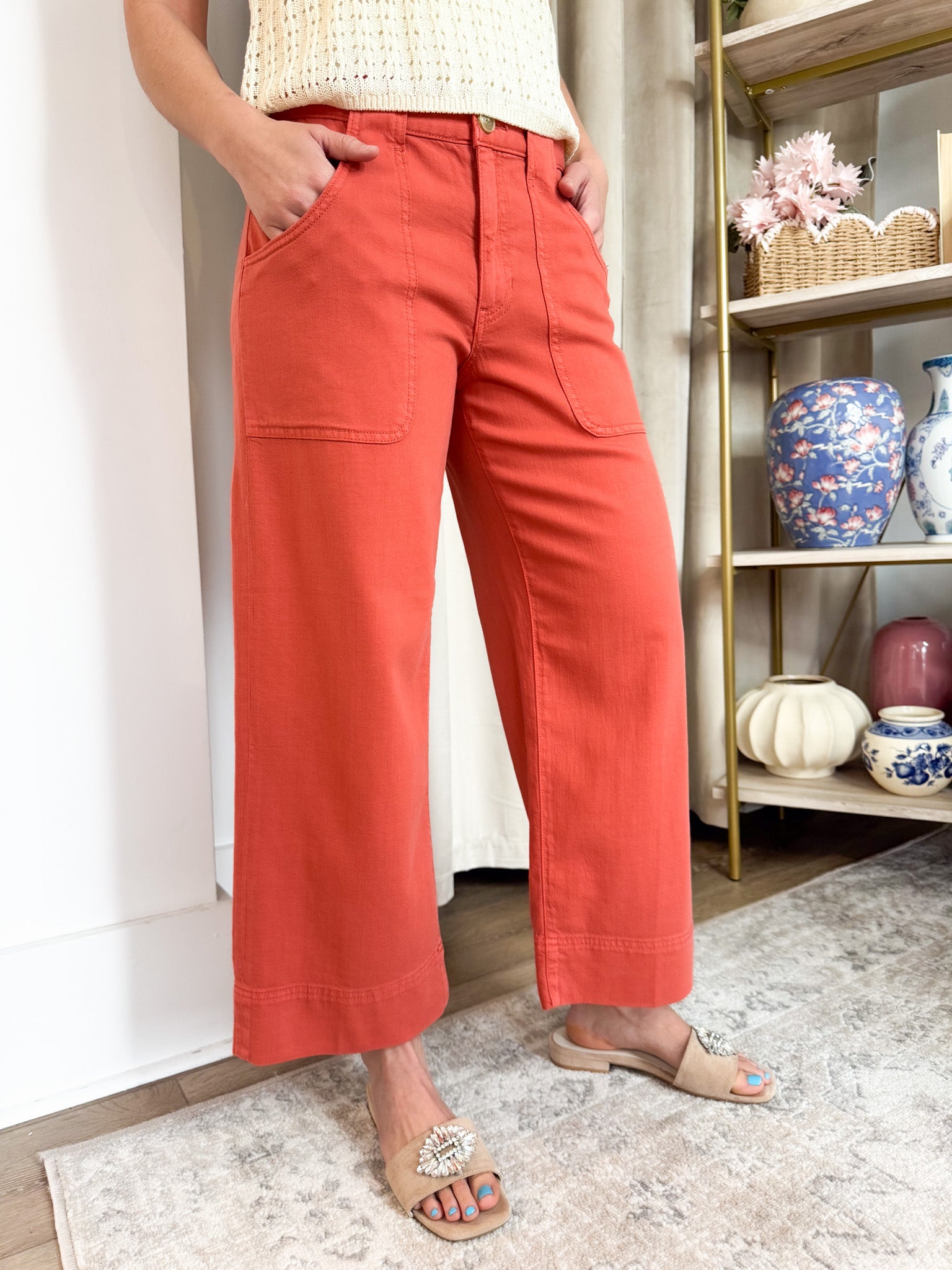 Red Clay Stride Cargo Wide Leg Cropped Denim