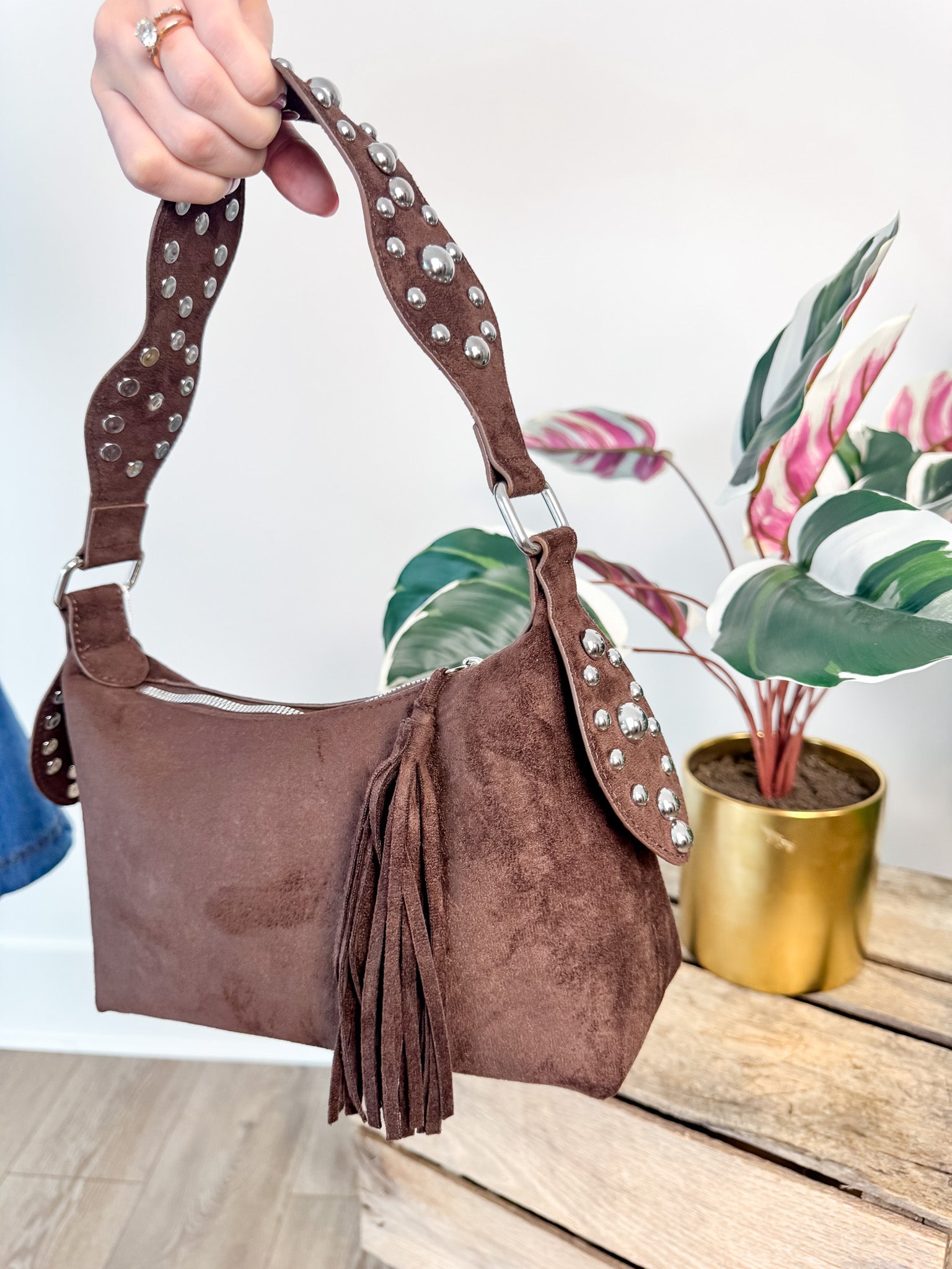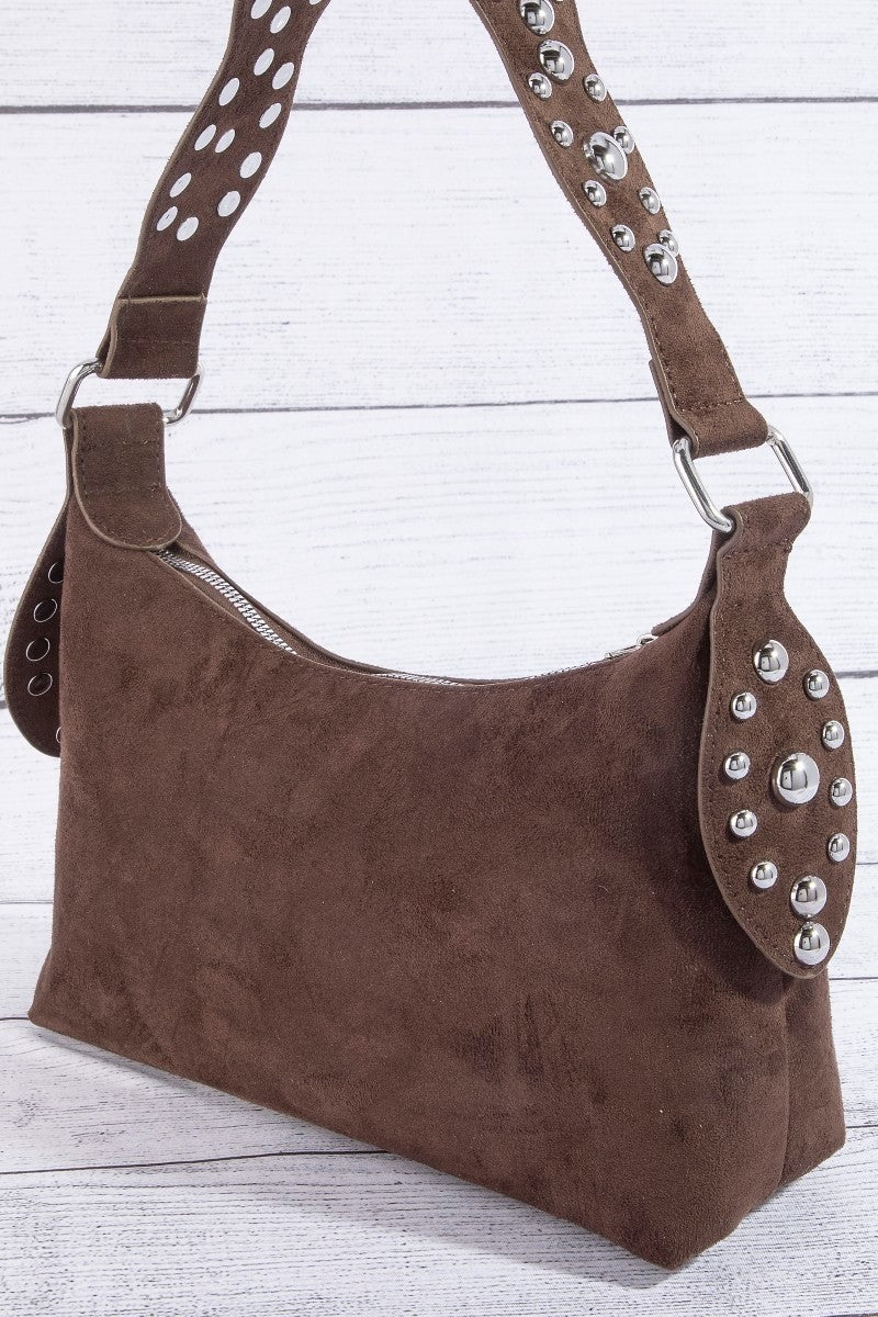 Studded Suede Shoulder Bag