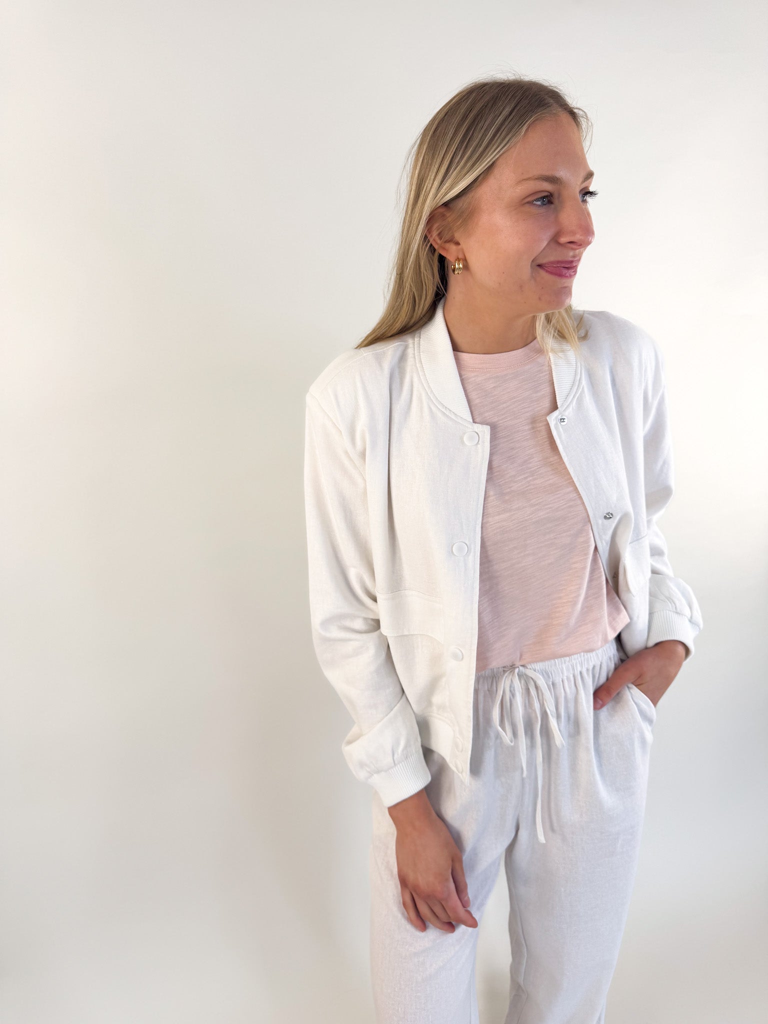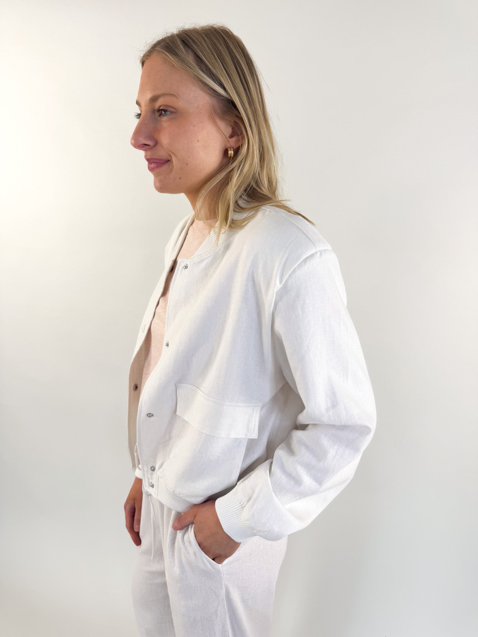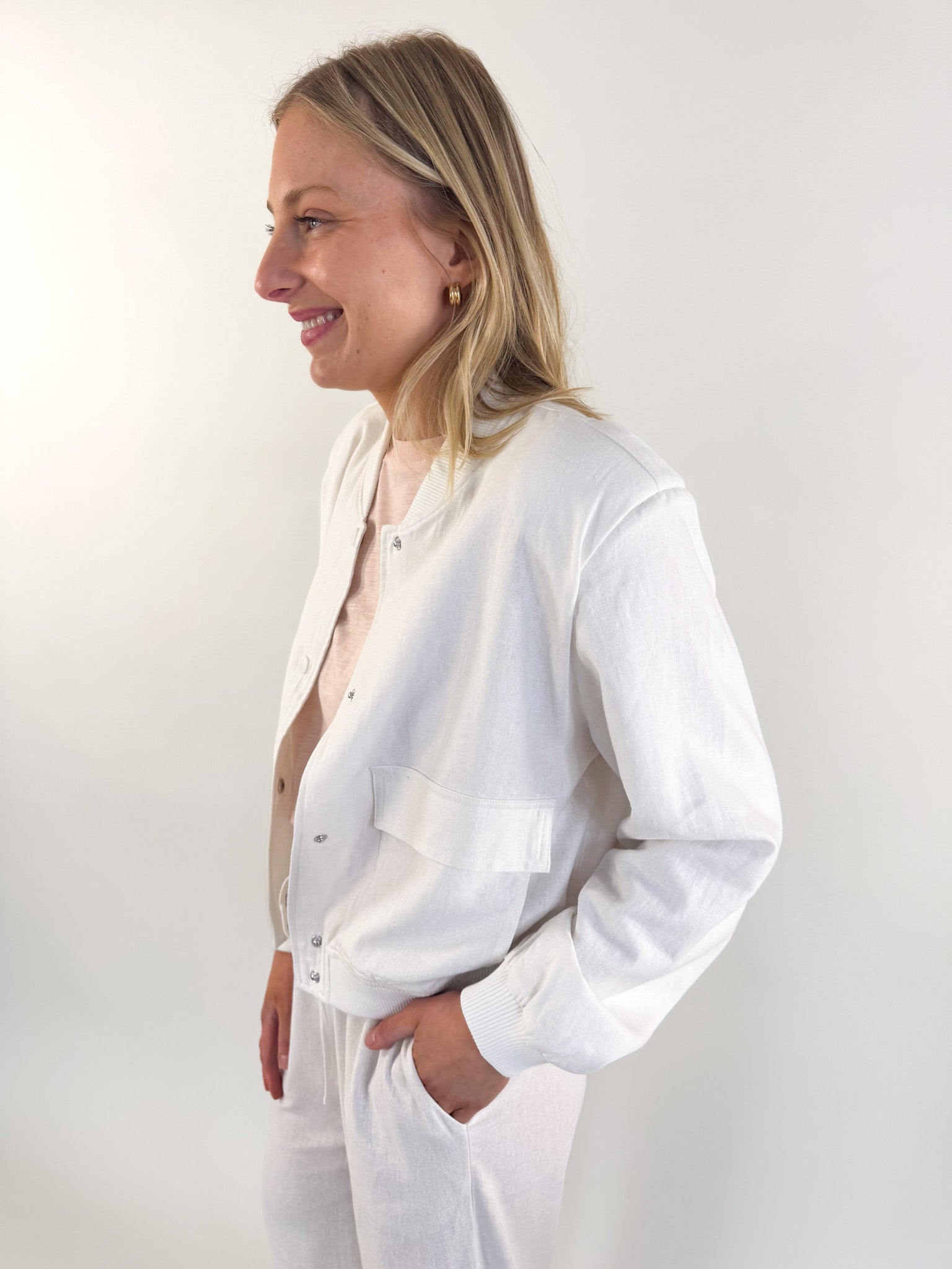 This is the perfect layer to take you from season to season with effortless cool. Style it over dresses, denim, or trousers—this jacket pulls it all together.