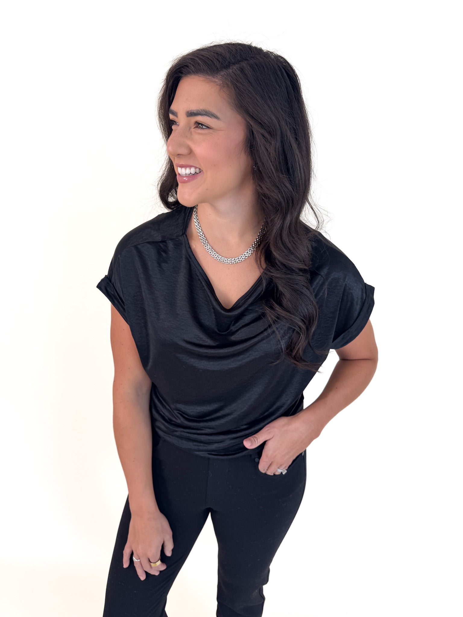 Brynn Dolman Sleeve Black Blouse