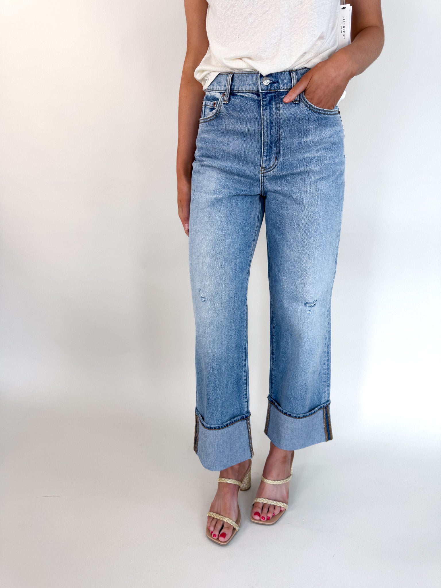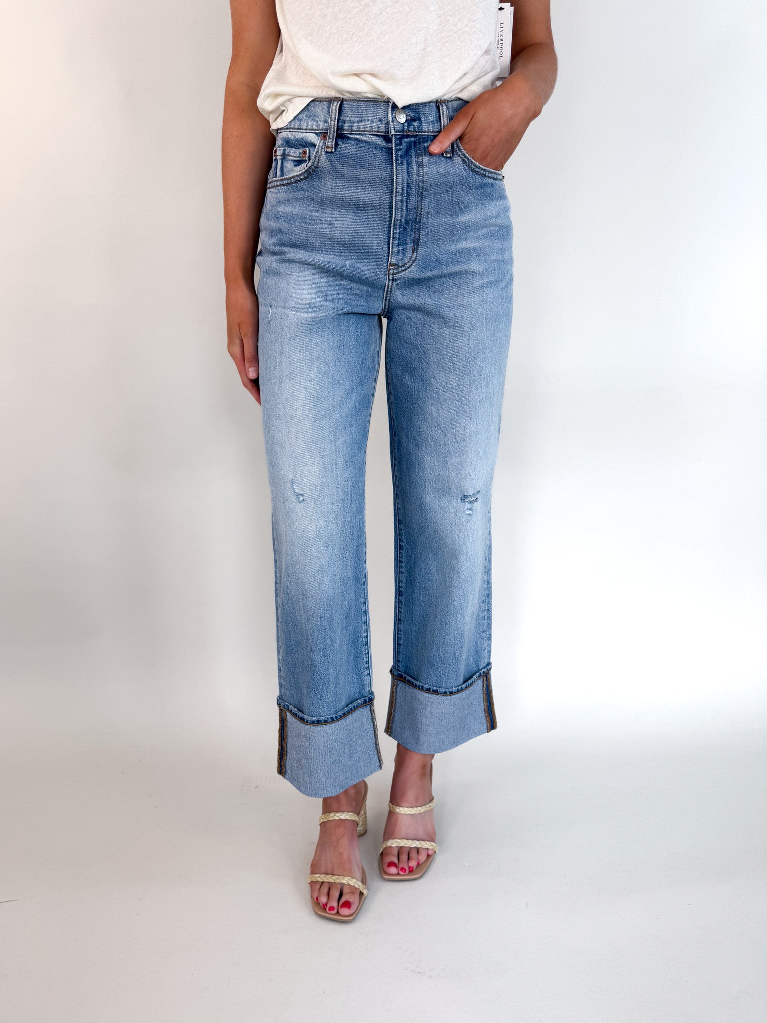 Take on the town in this versatile high rise loose jean. Rolled cuffs and authentic highs and lows add character to this it-girl jean. Constructed made using our "Tough Love" denim, which makes every pair look like an authentic vintage fit - it's mostly rigid but yields to your body in all the right ways.