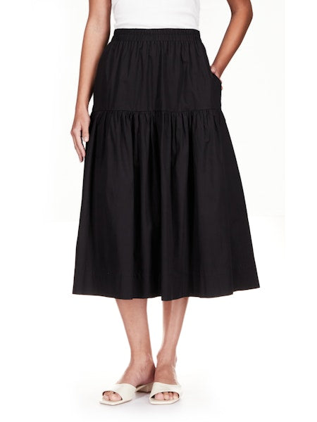 Made from crisp, breathable poplin, this skirt features a relaxed, flowy fit that moves with you and an elastic waistband for pull-on ease and all-day comfort.