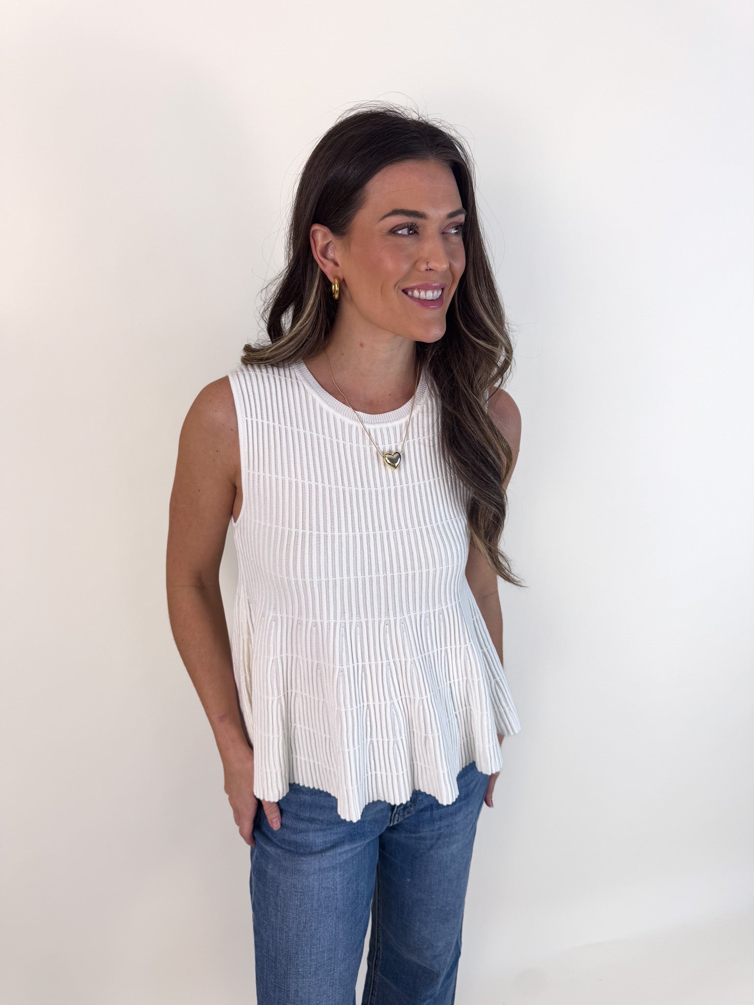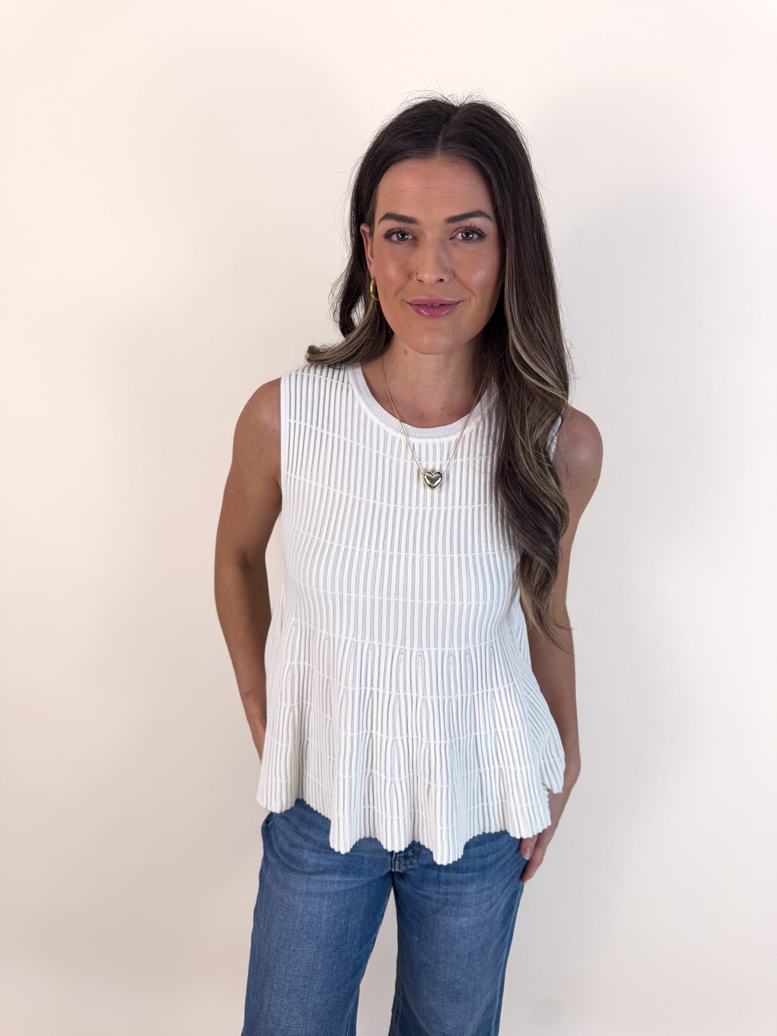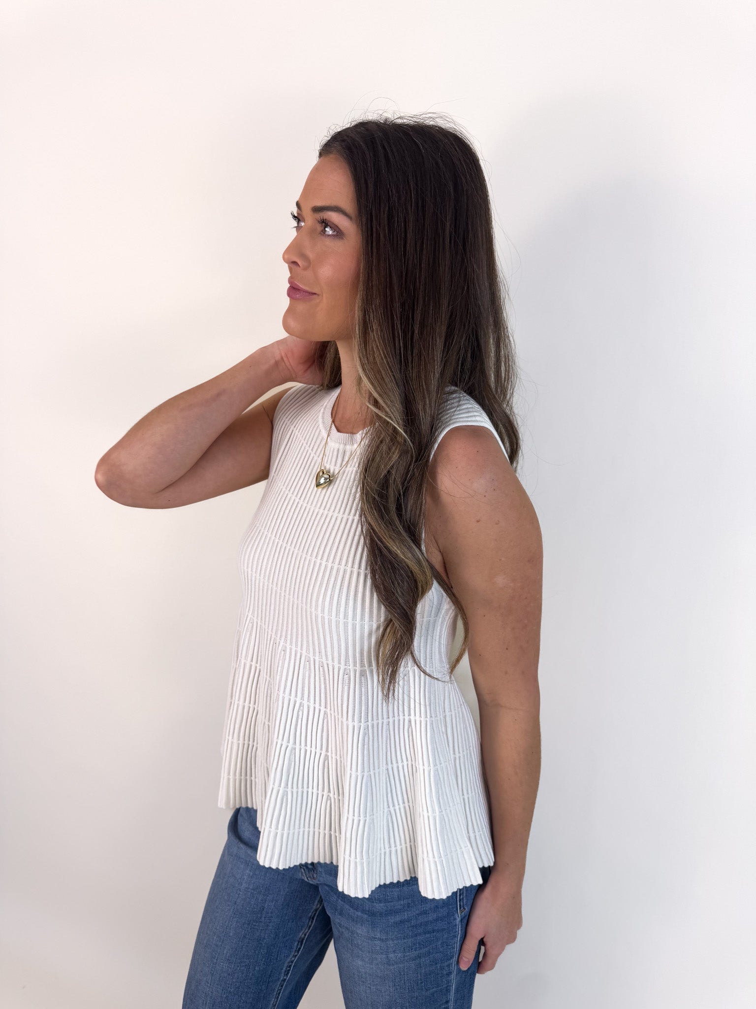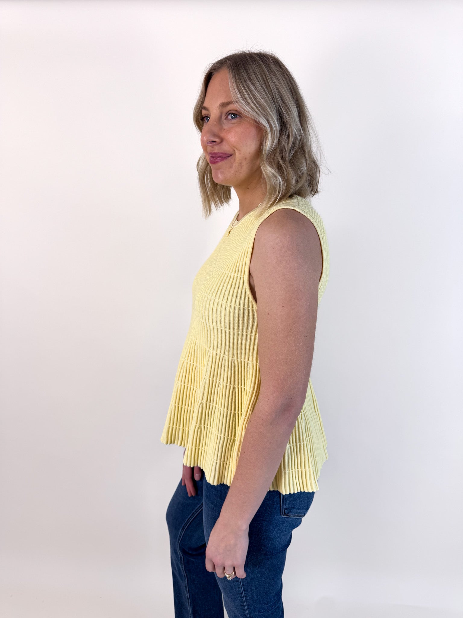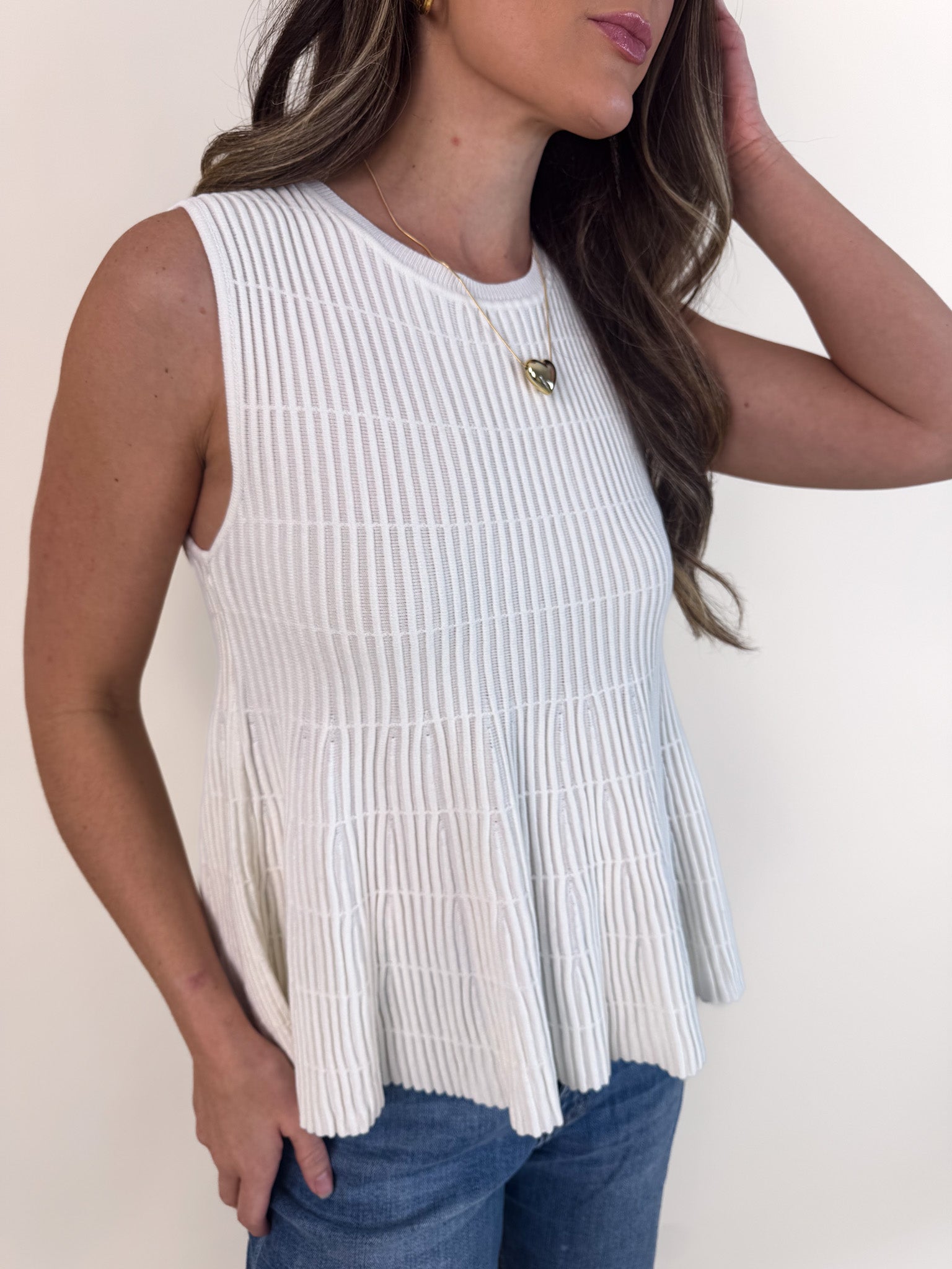 Flared Rib Knit Sleeveless Sweater