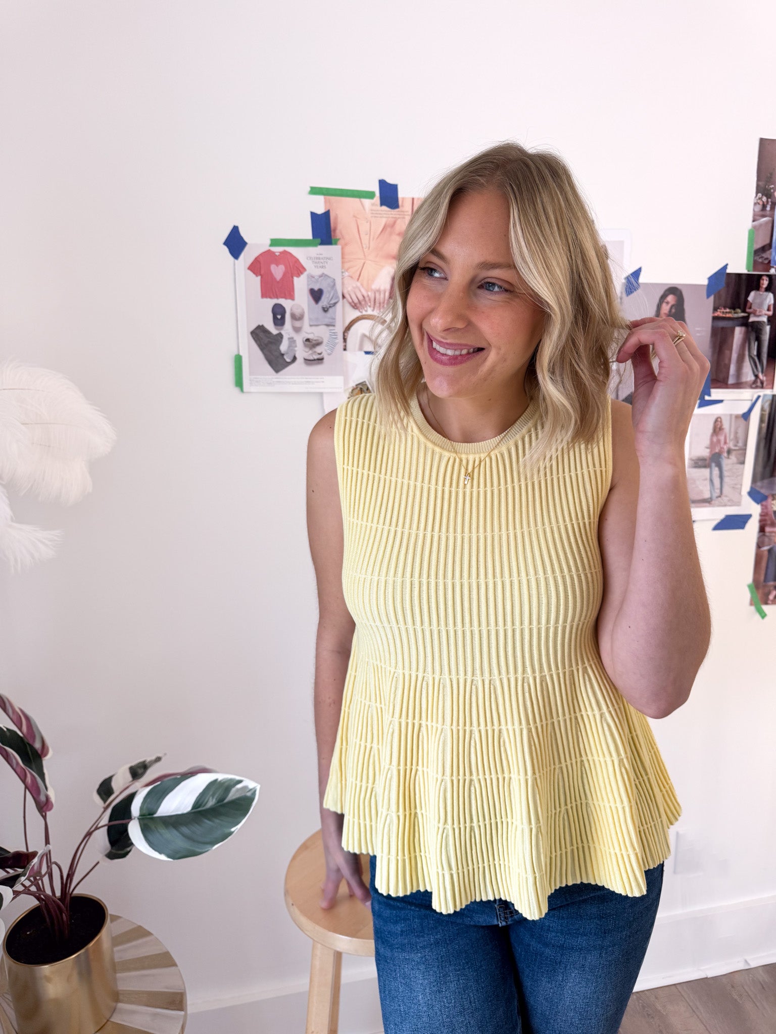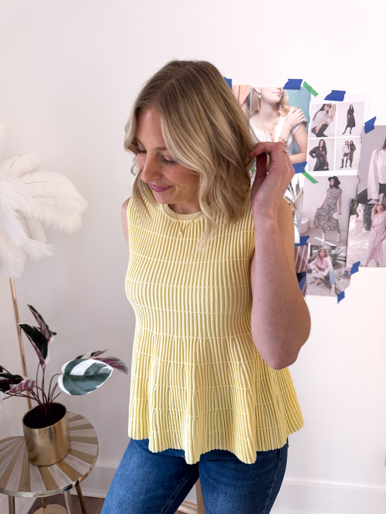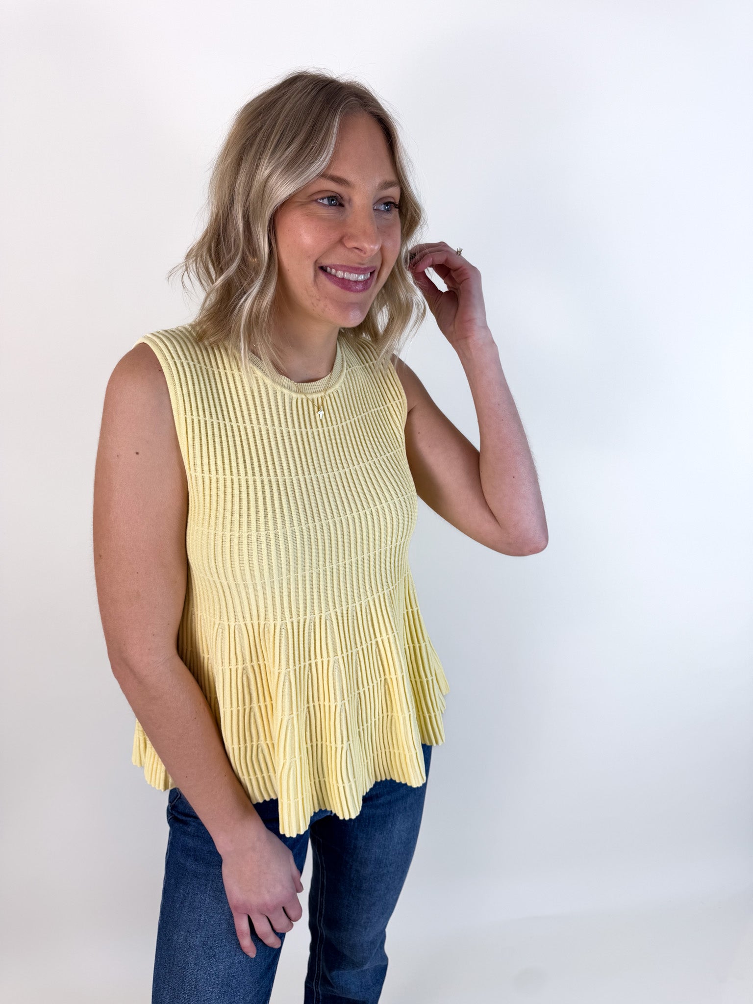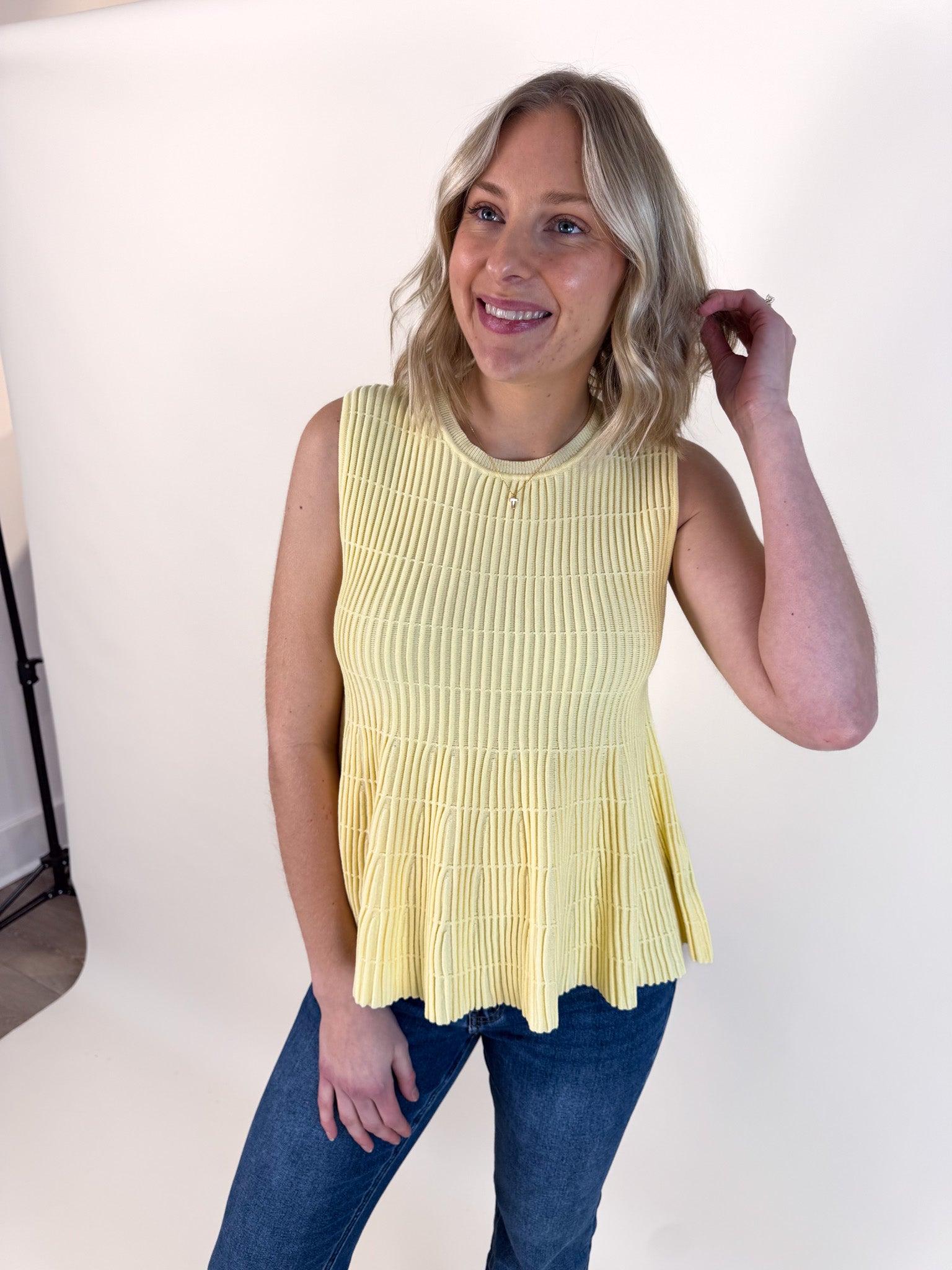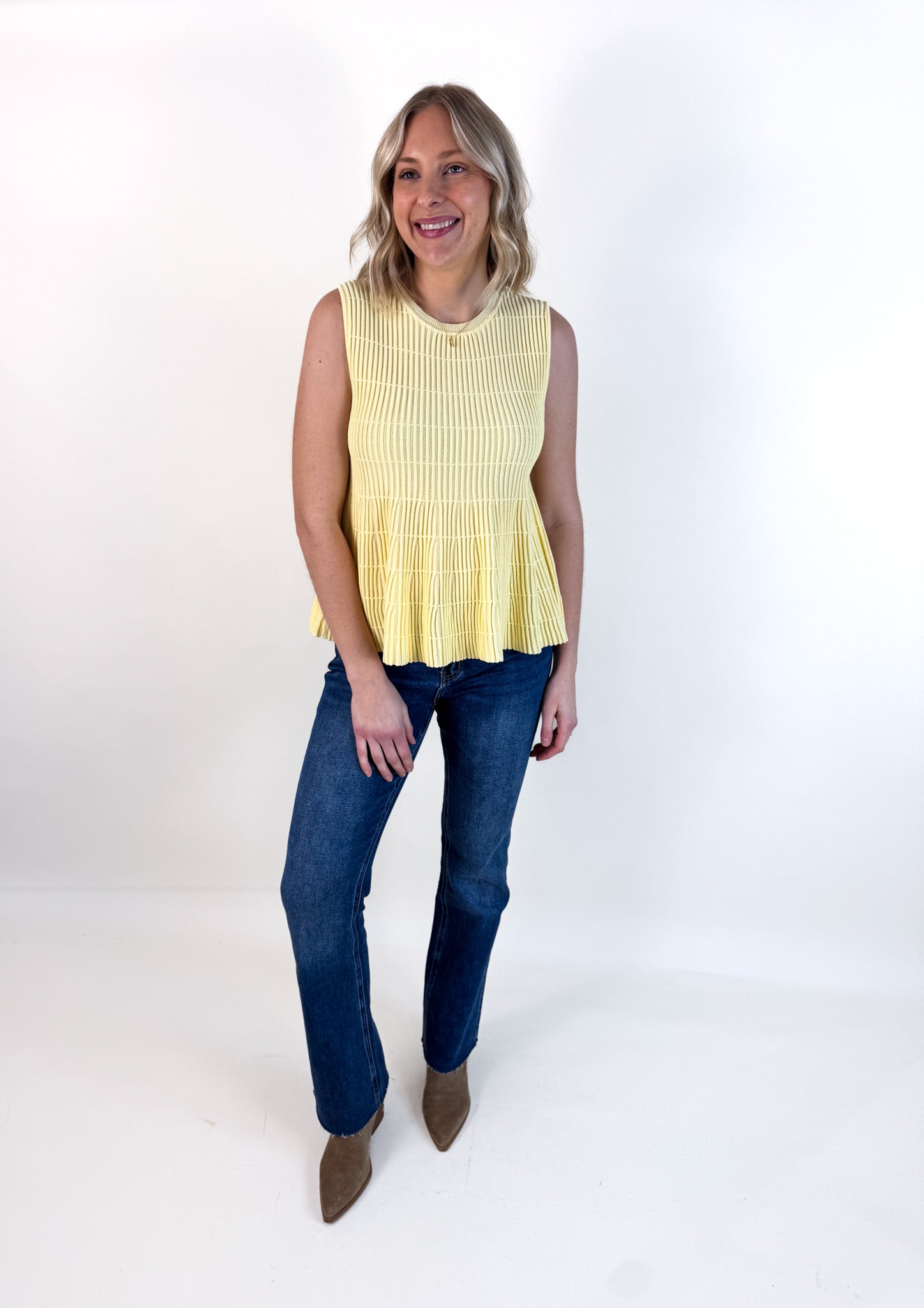 Flared Rib Knit Sleeveless Sweater