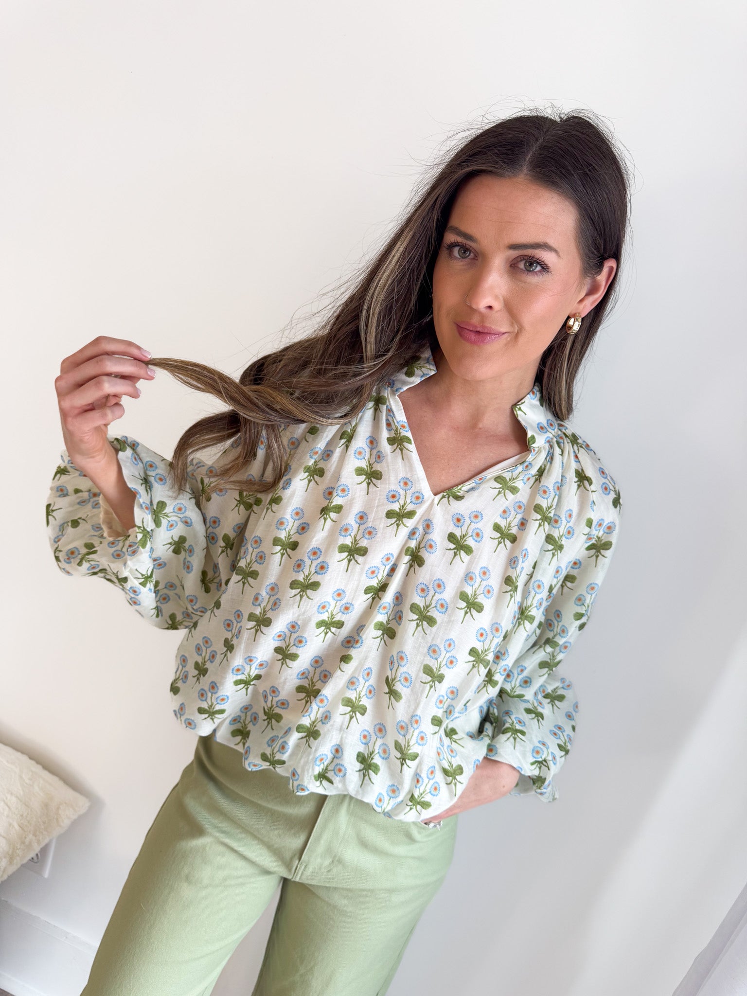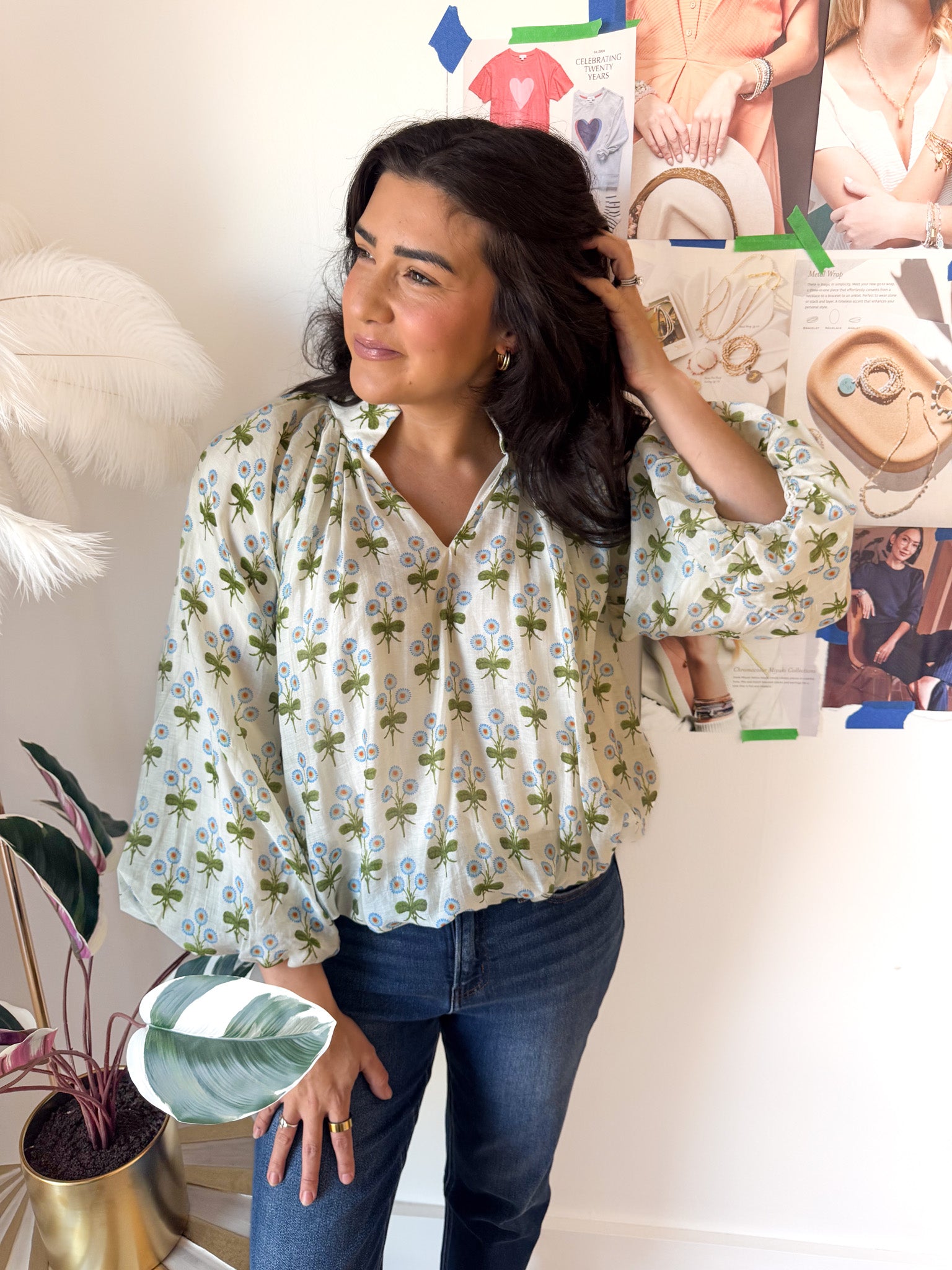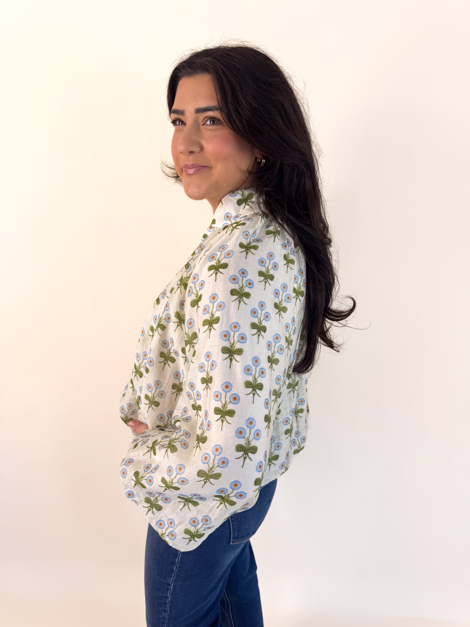 Brighten your wardrobe with this charming blouse featuring a bold floral block pattern. Perfect for casual outings or layering, it brings effortless style and a pop of color to any ensemble.