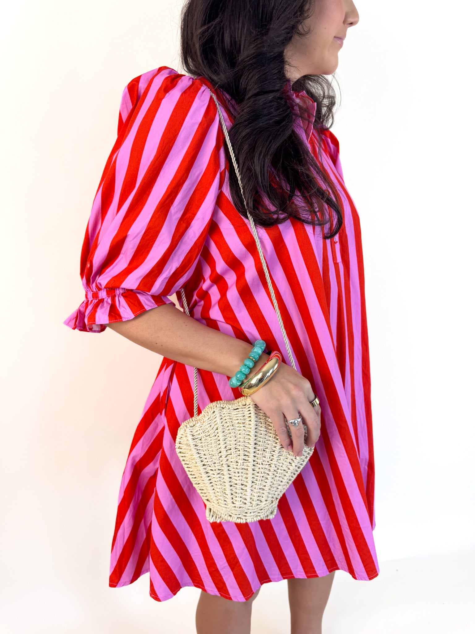 Woven straw meets coastal charm in this crossbody bag, designed to turn heads wherever you go. The intricate braided seashell detailing adds an effortless touch of sophistication, making it the perfect companion for beach days or everyday adventures.