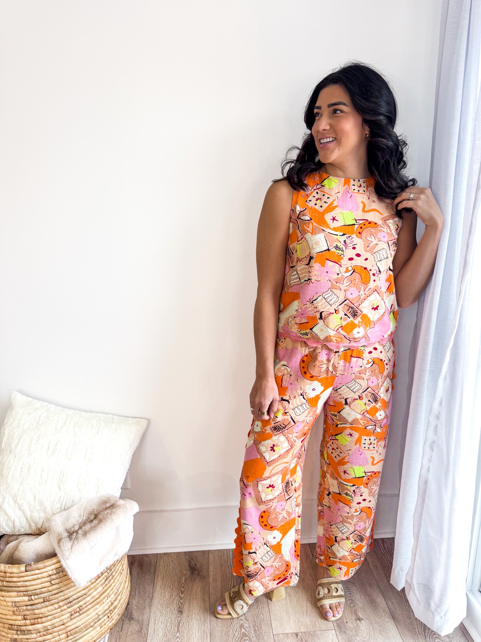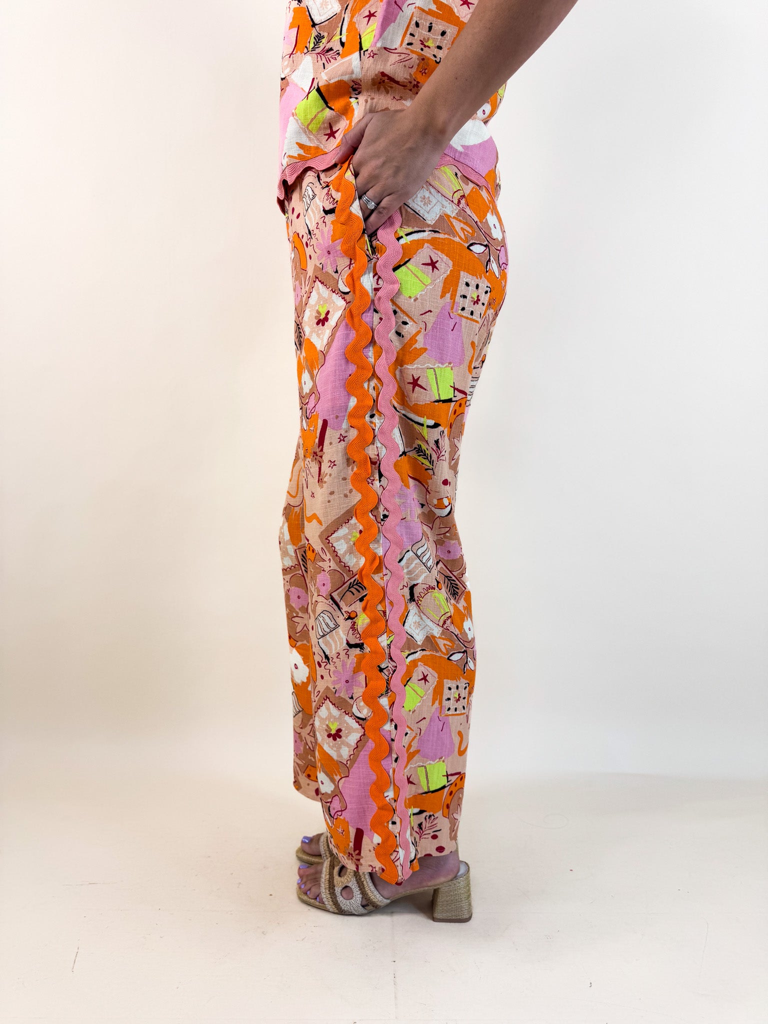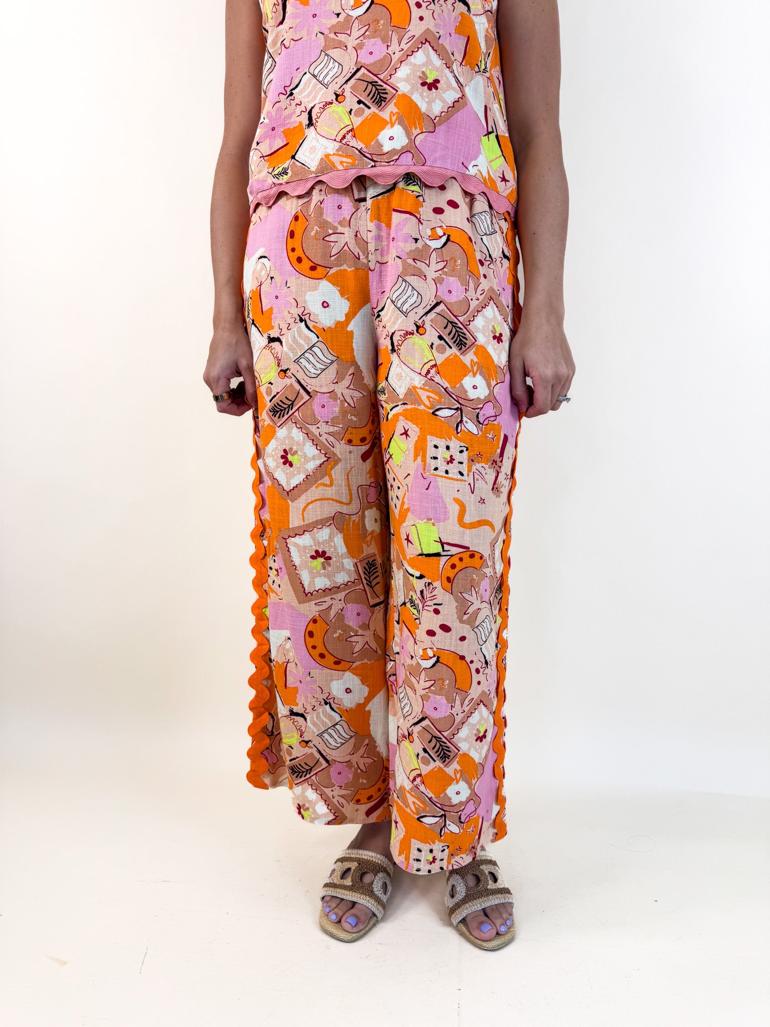 Sunset Scribble Linen Trim Pant