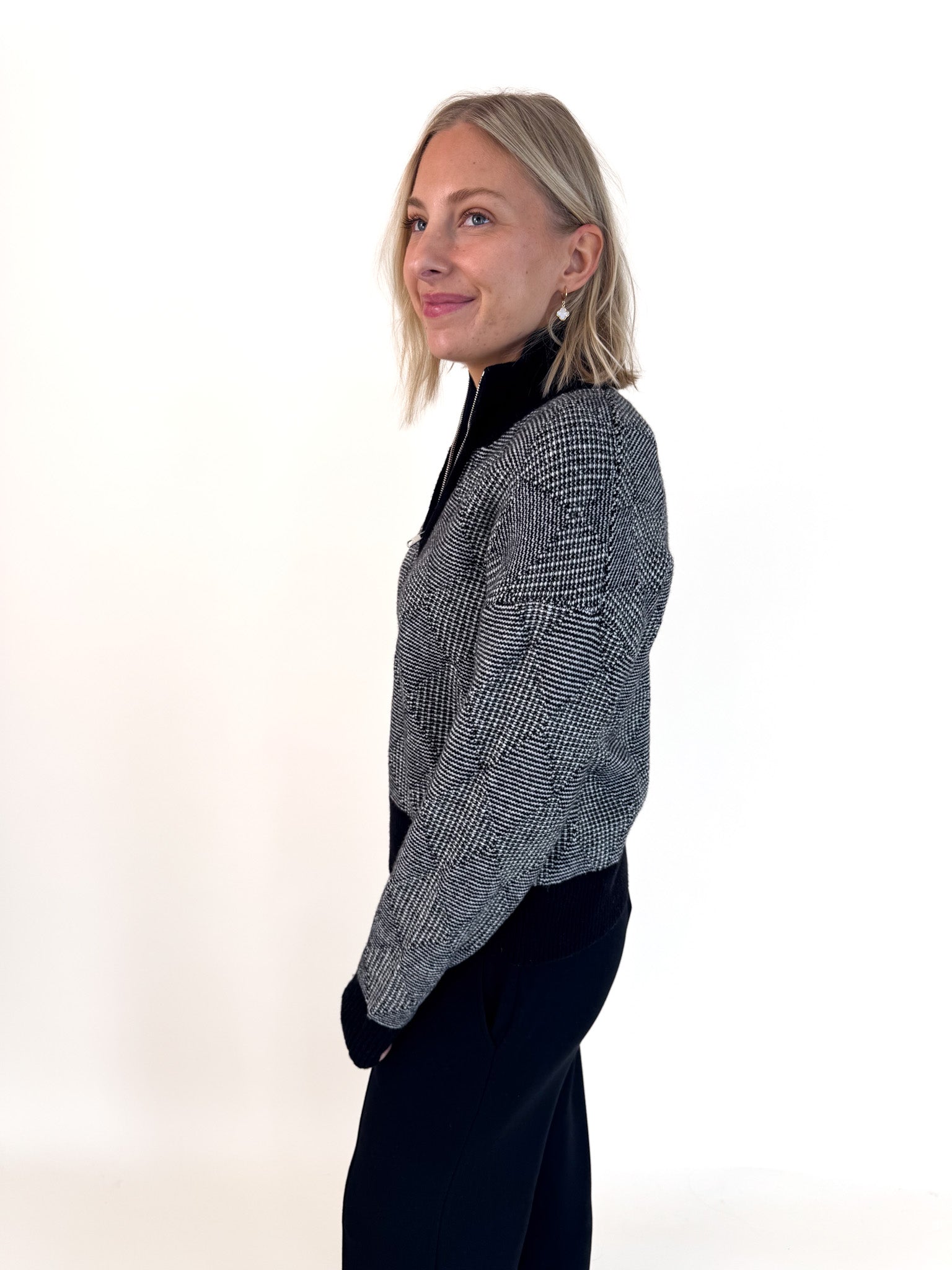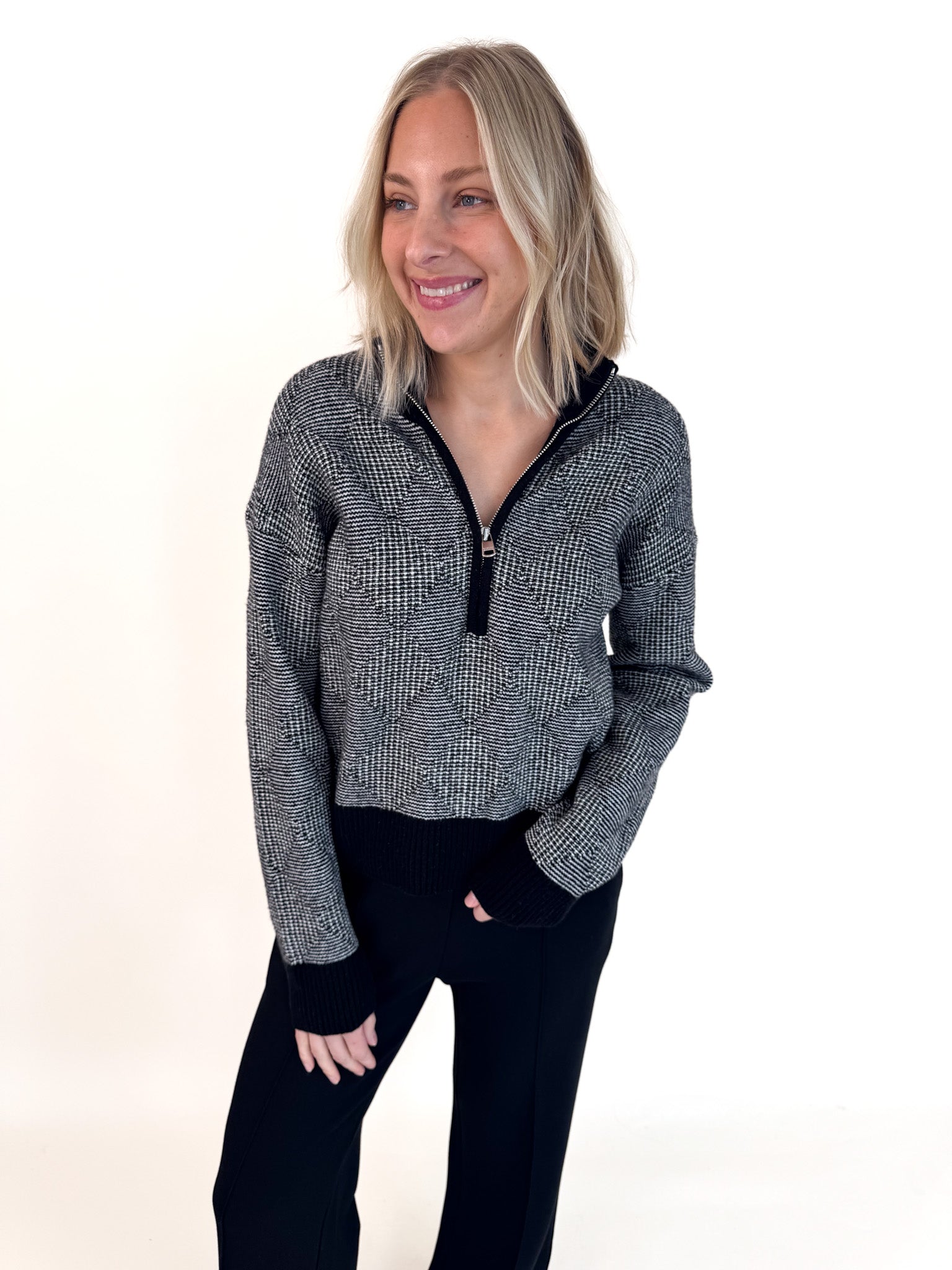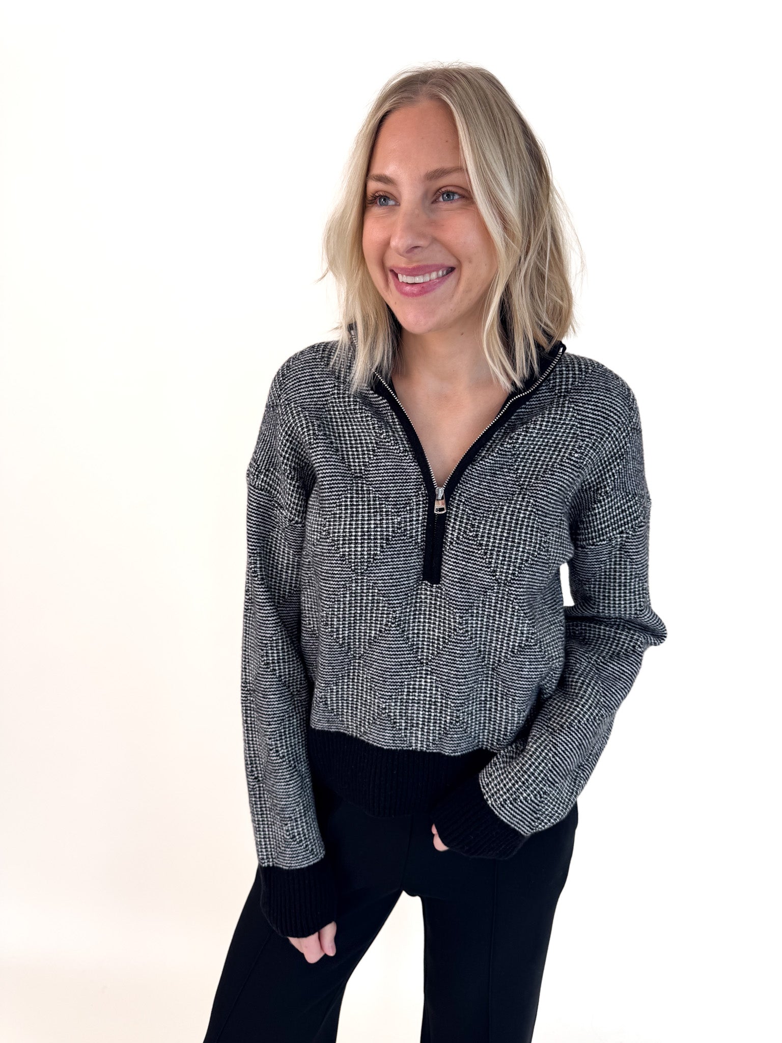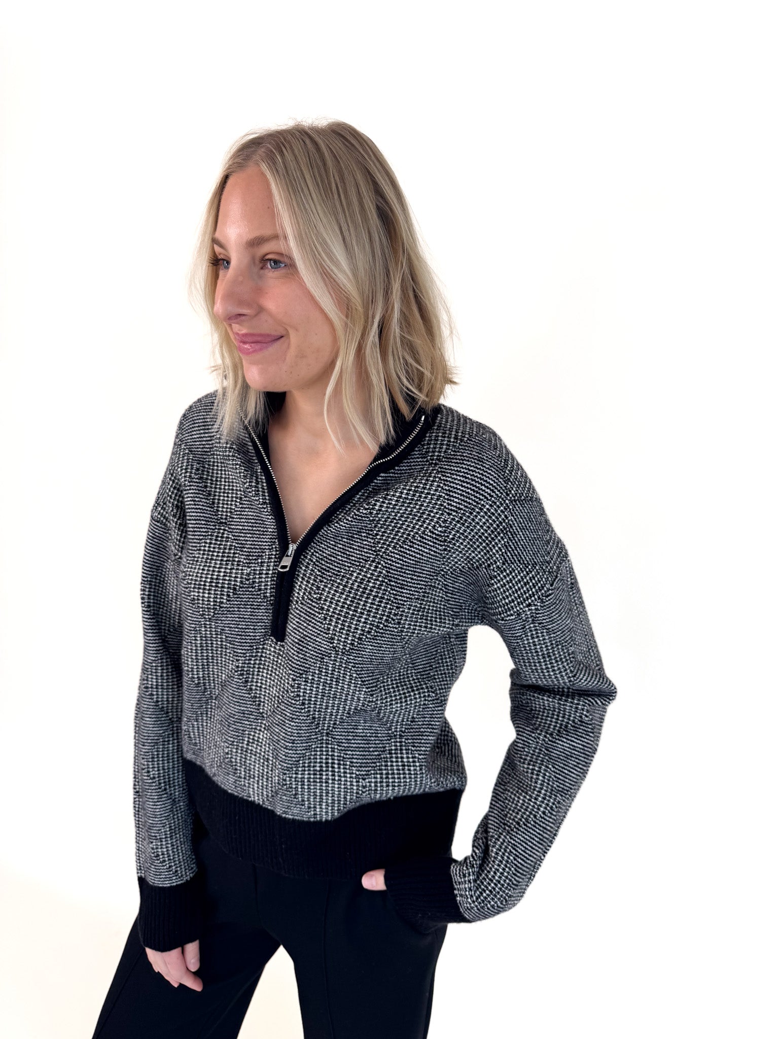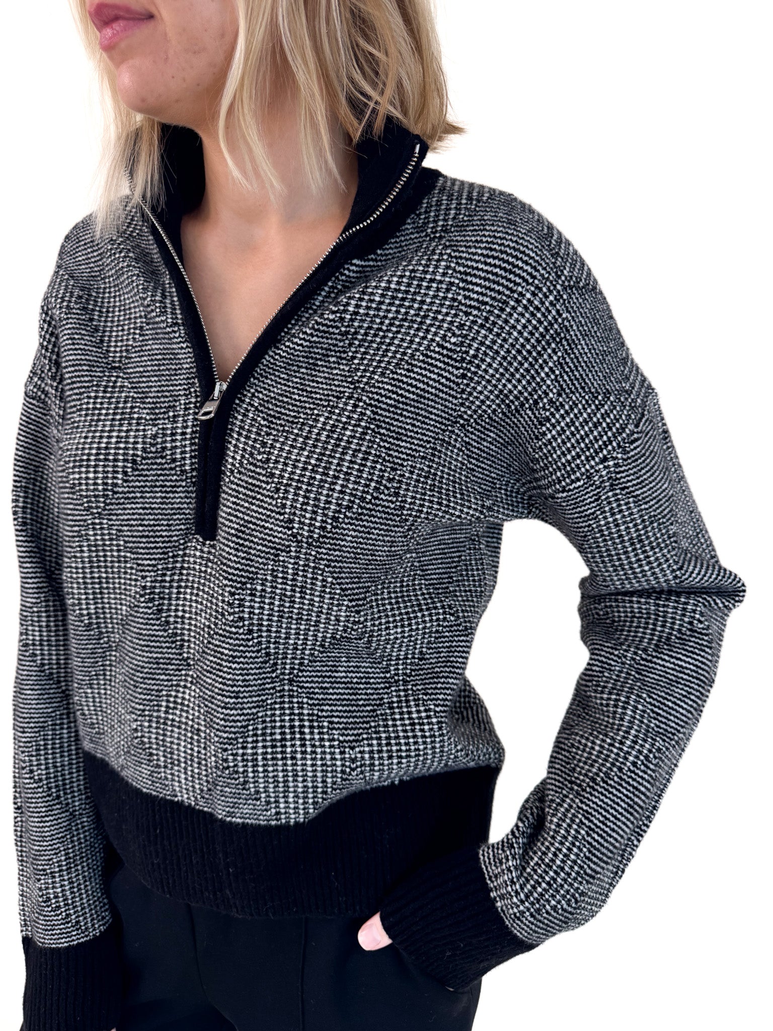 Elevate your look with the Aldridge - a half-zip with a two-tone diamond stitch.