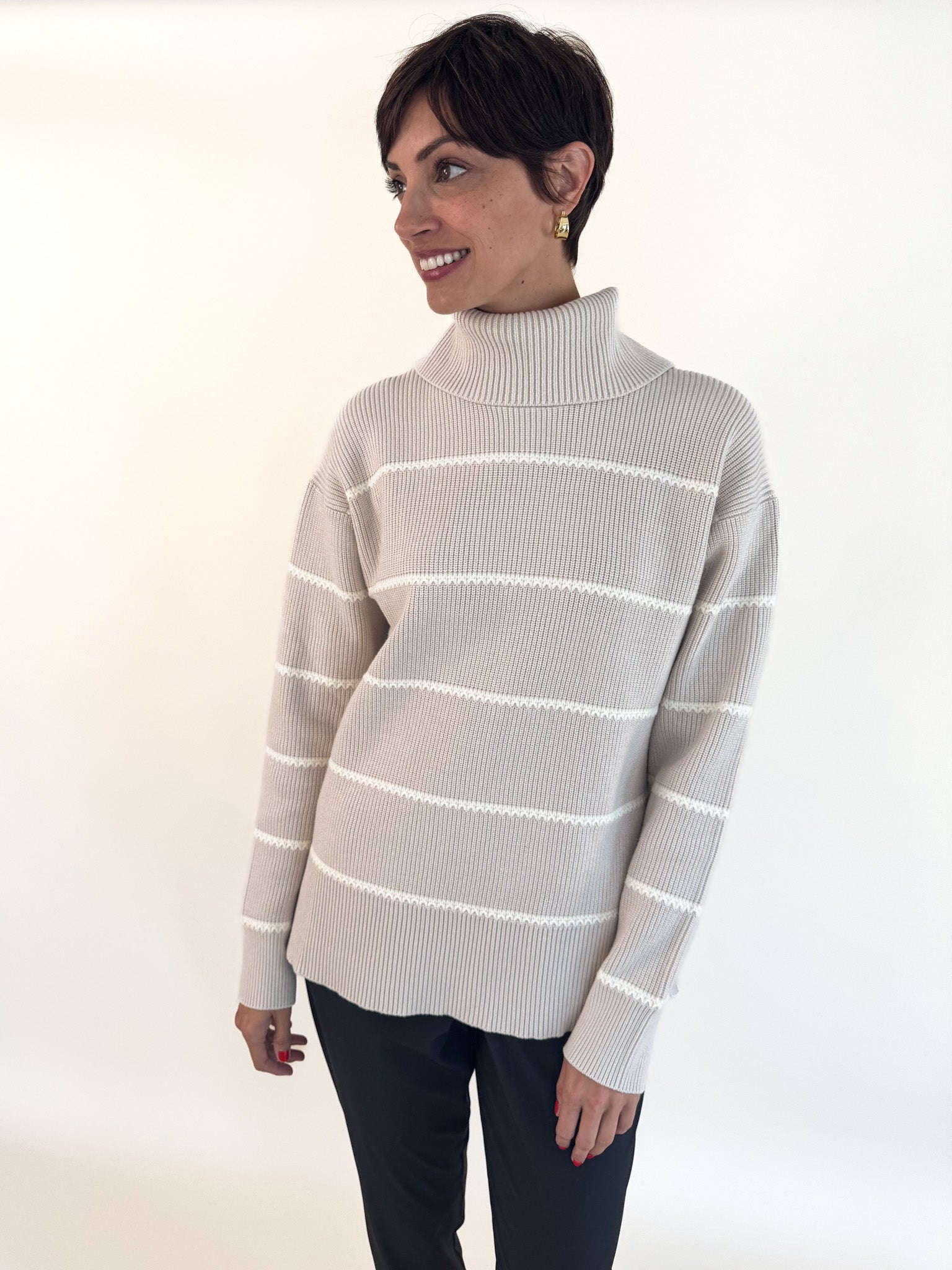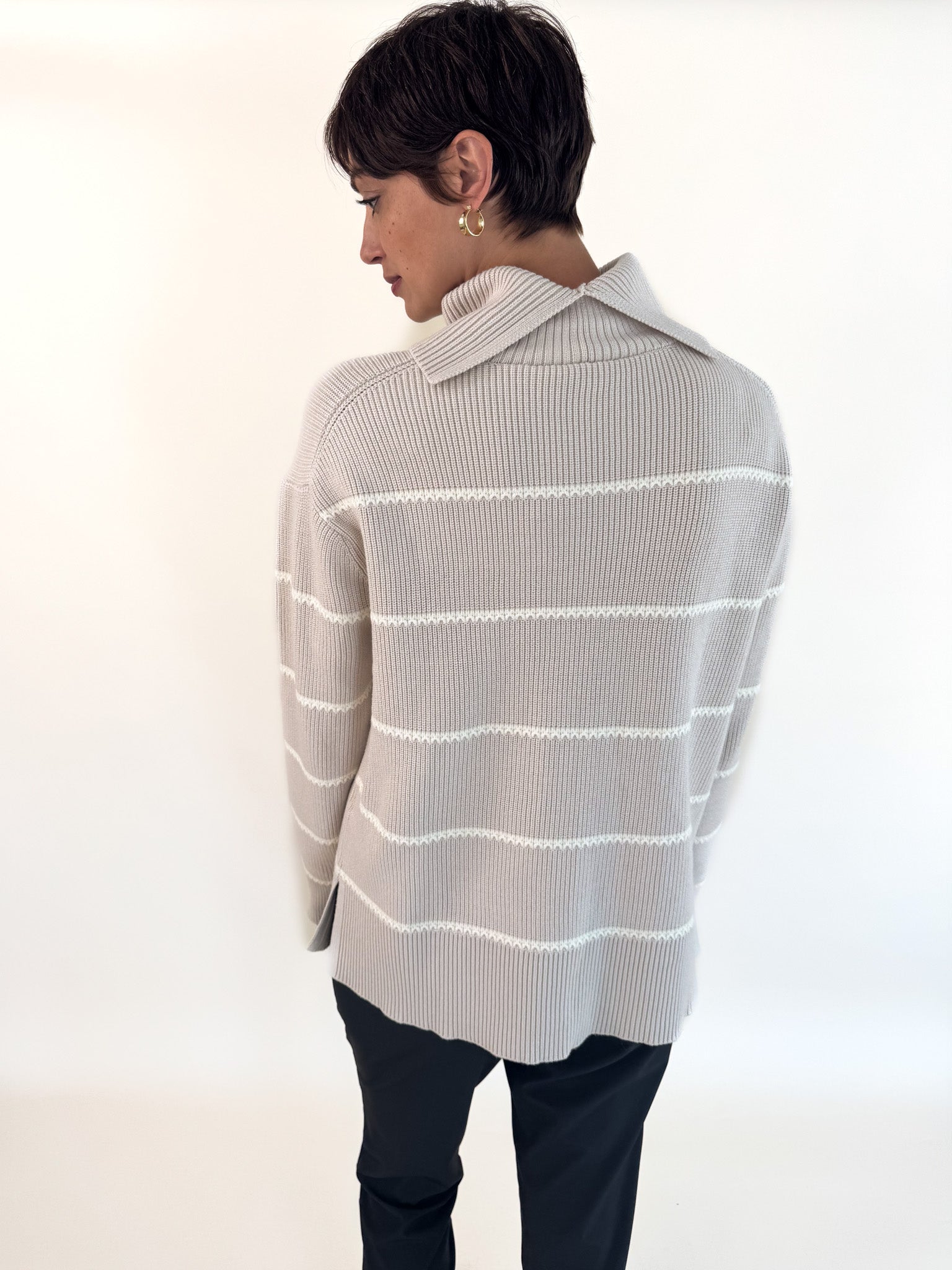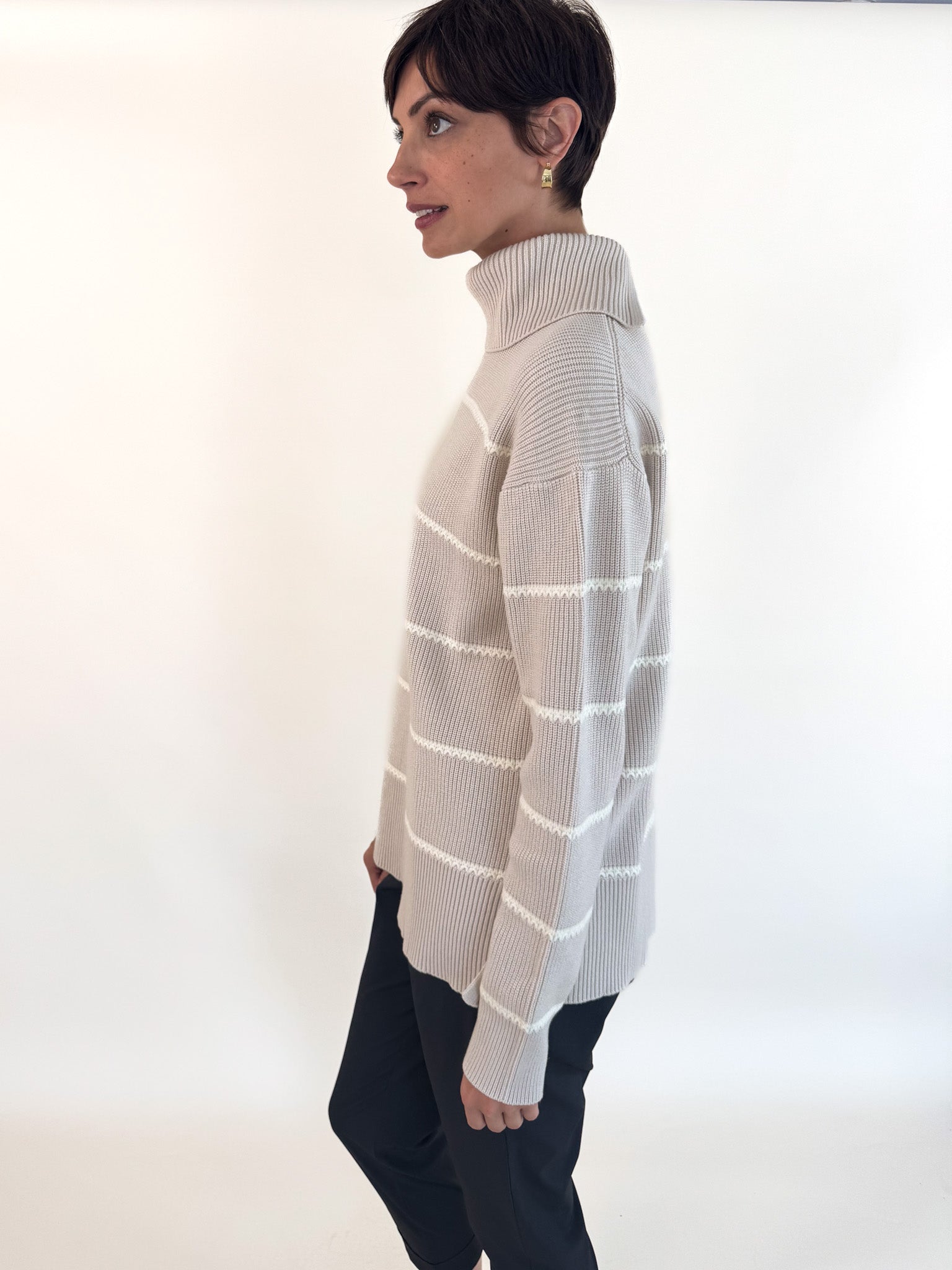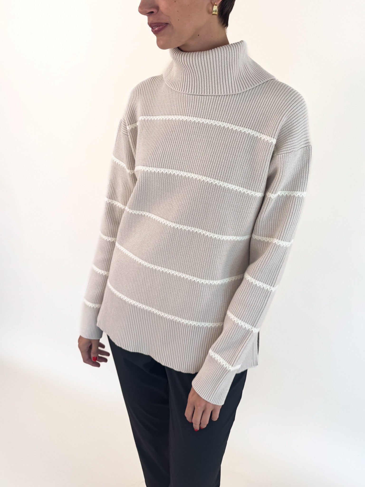 • Splits at the back of the roll neck and the side seams