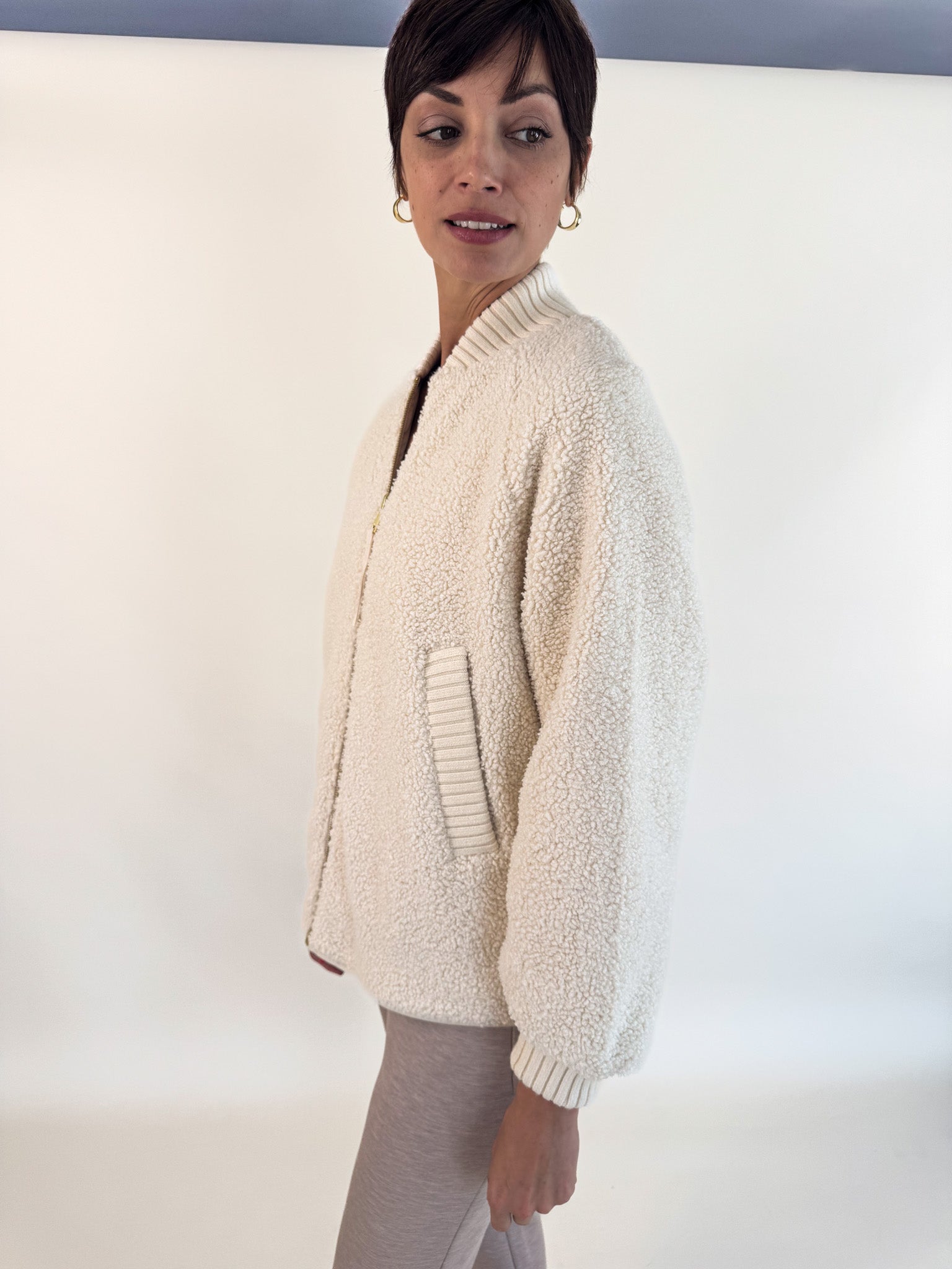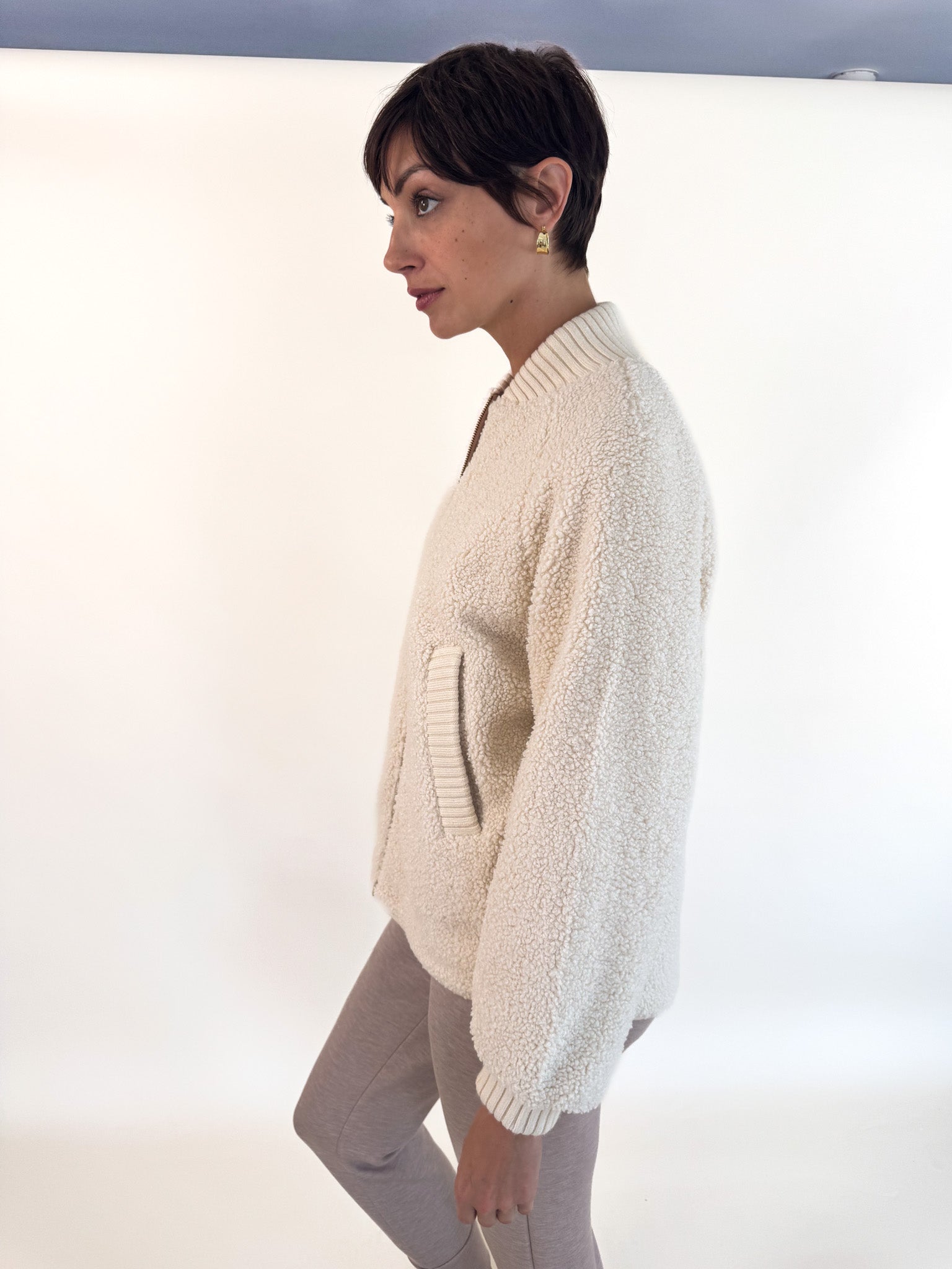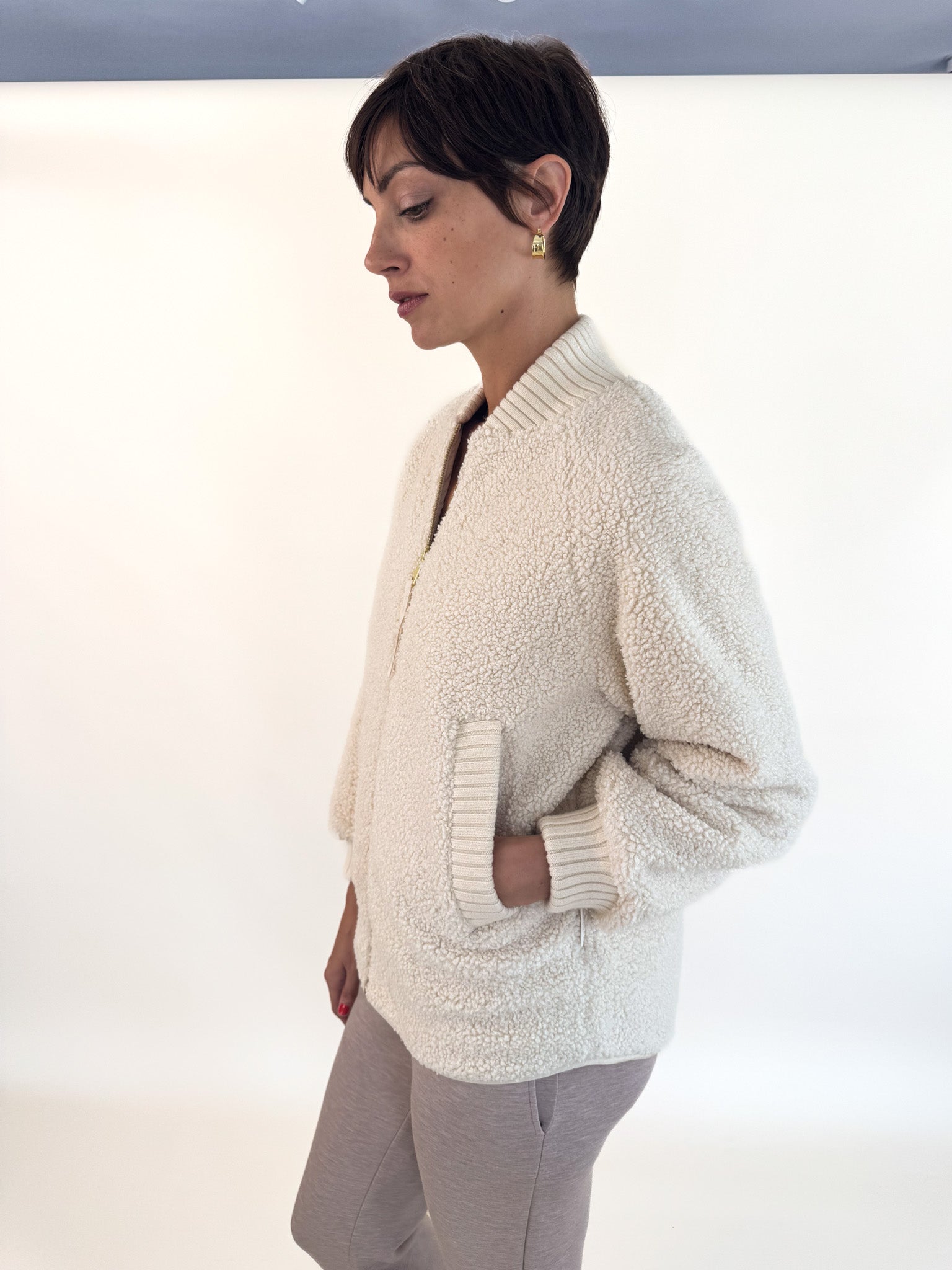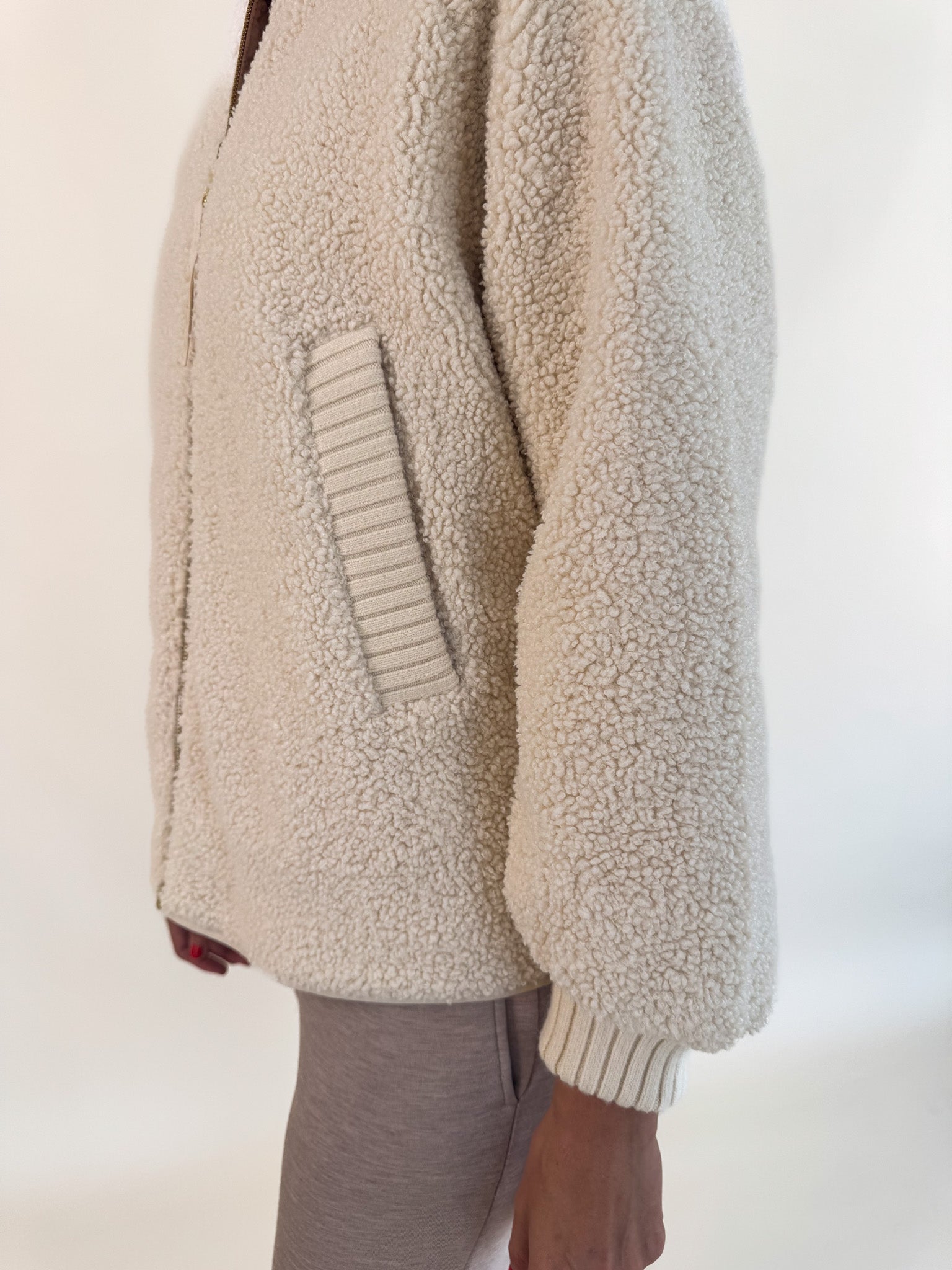 Customize your style with this soft and lightweight reversible jacket. Customize your style with the reversible Serina. Soft, lightweight, and super versatile, it's perfect for effortless transitional and cold-weather layering. Made from a tight, curly Bouclé Sherpa on one side and our Crinkle Shell fabric in quilted design on the other, it's cut to a boxy bomber shape with a flattering curved hem. Complete with pockets and chunky knitted cuffs and collar.