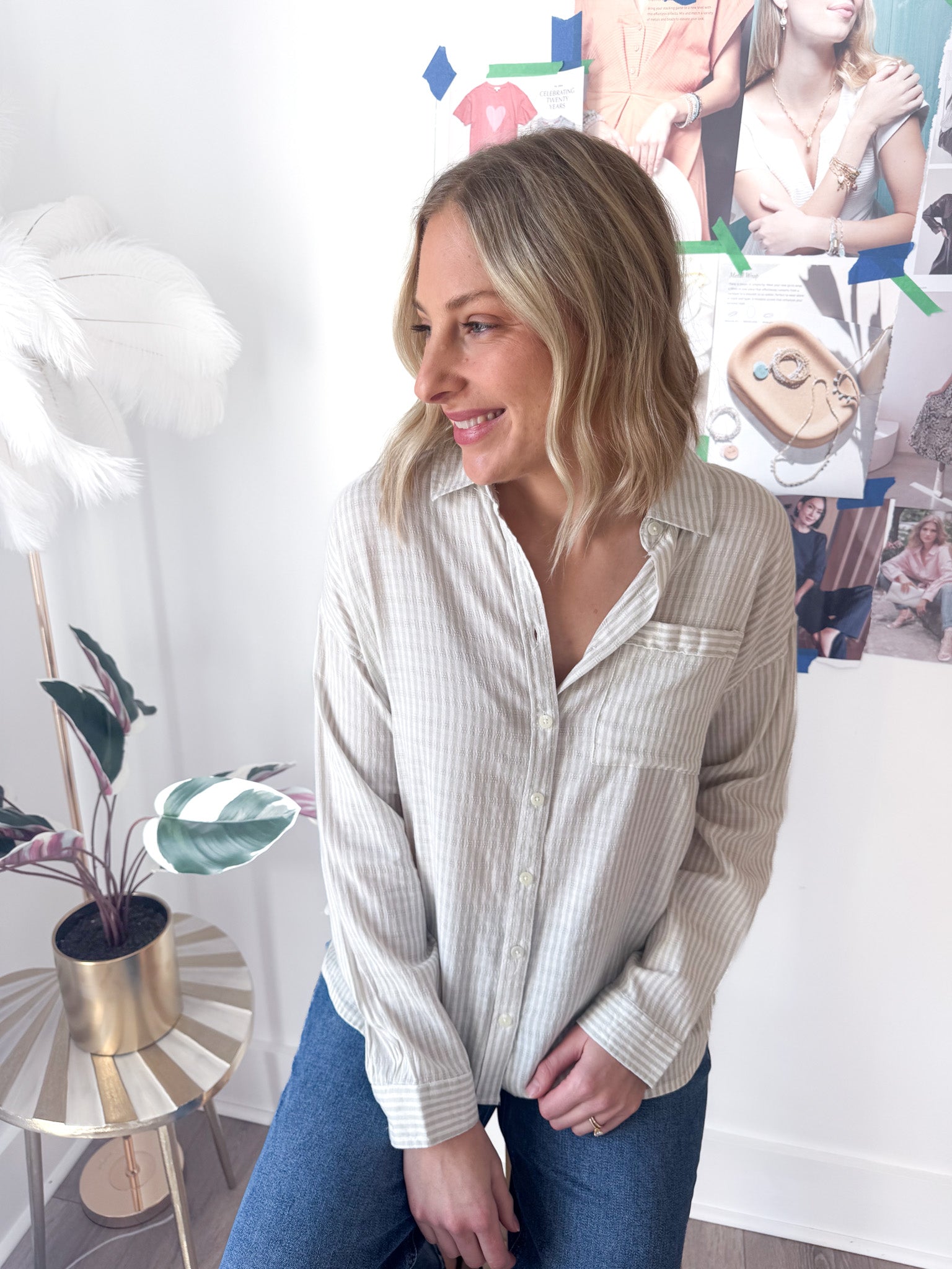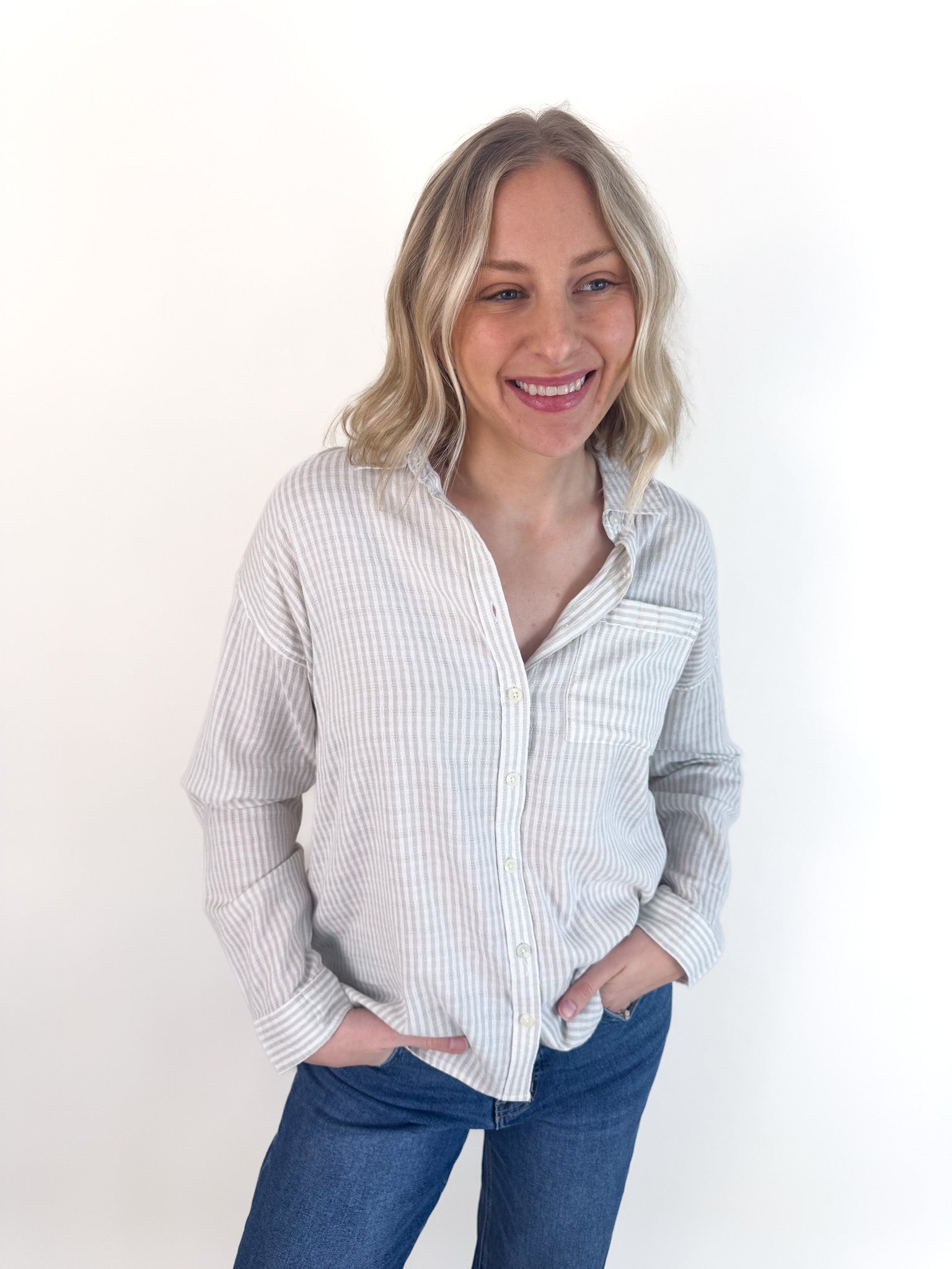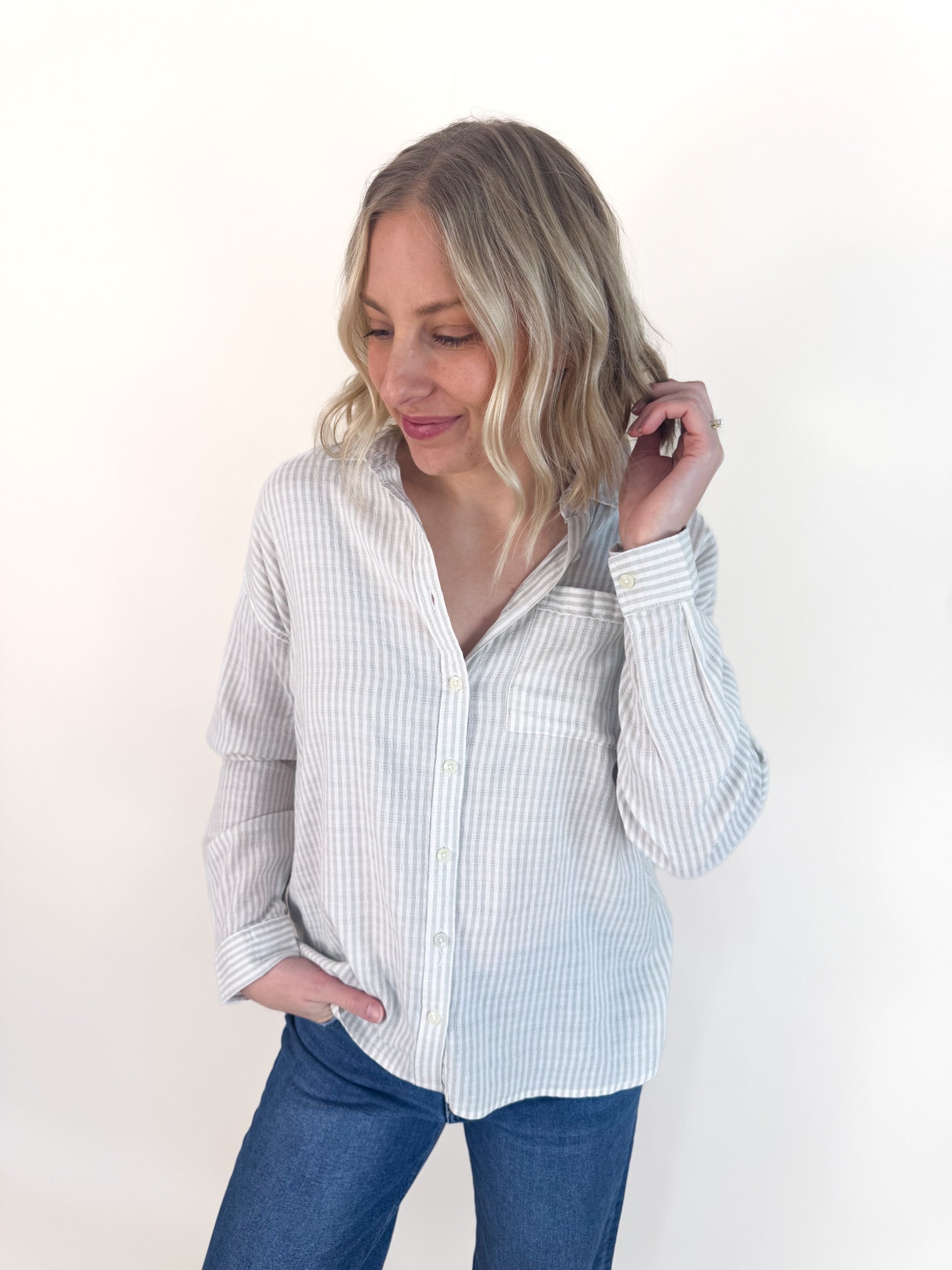 The soft, breathable fabric drapes beautifully over your frame, making it the perfect companion to your favorite denim. Whether you're running errands or meeting friends for coffee, this blouse strikes that sweet spot between polished and relaxed.
