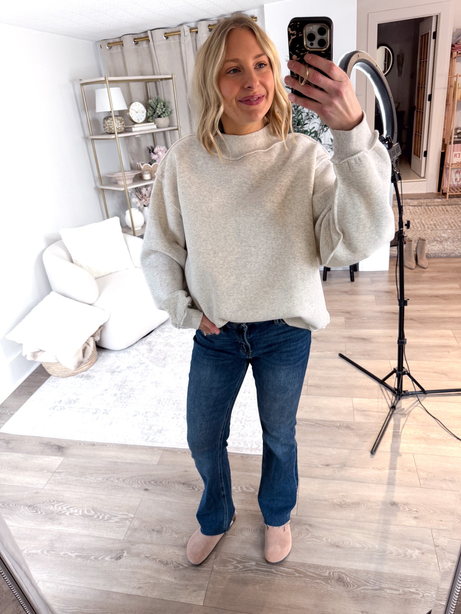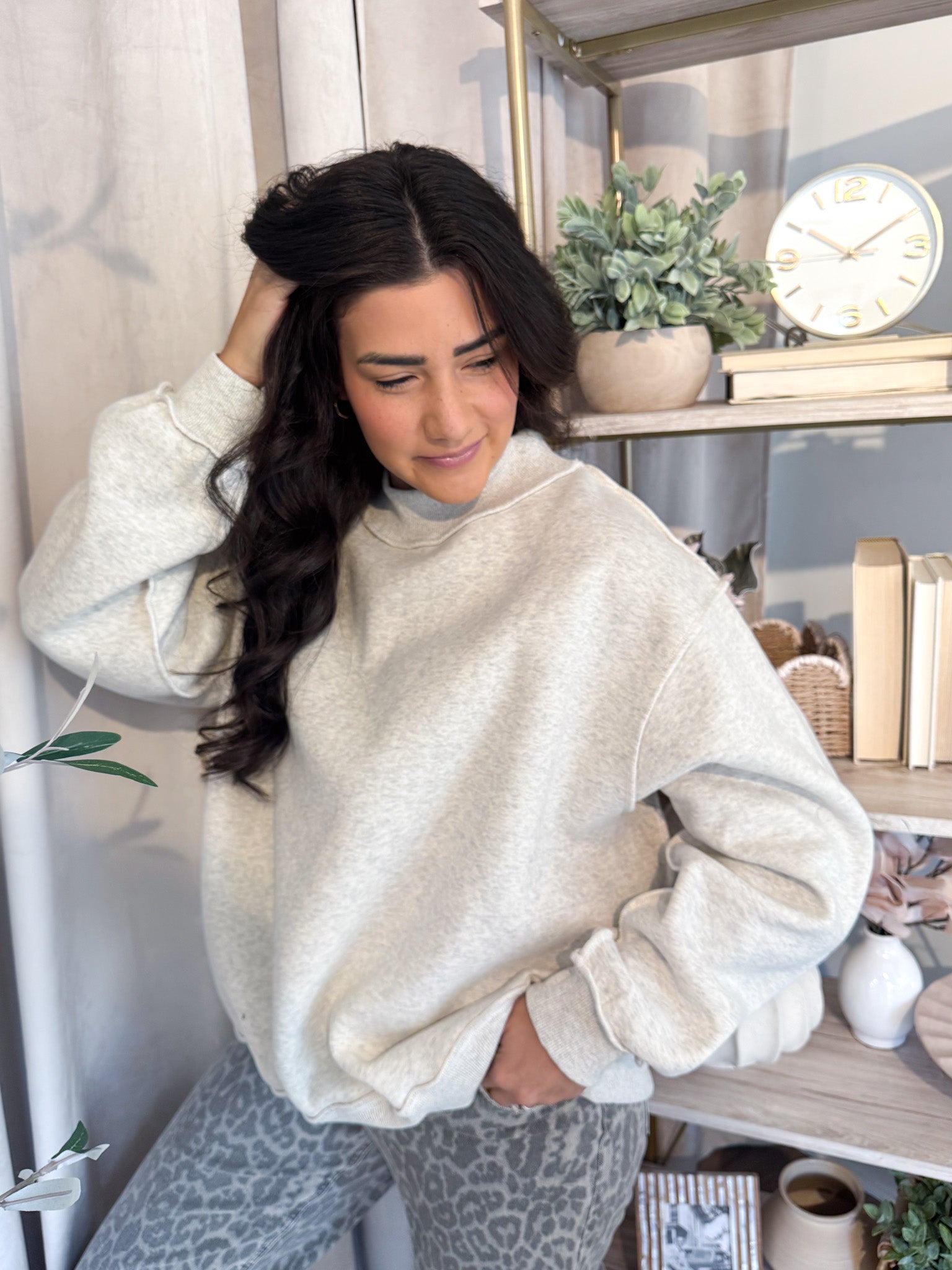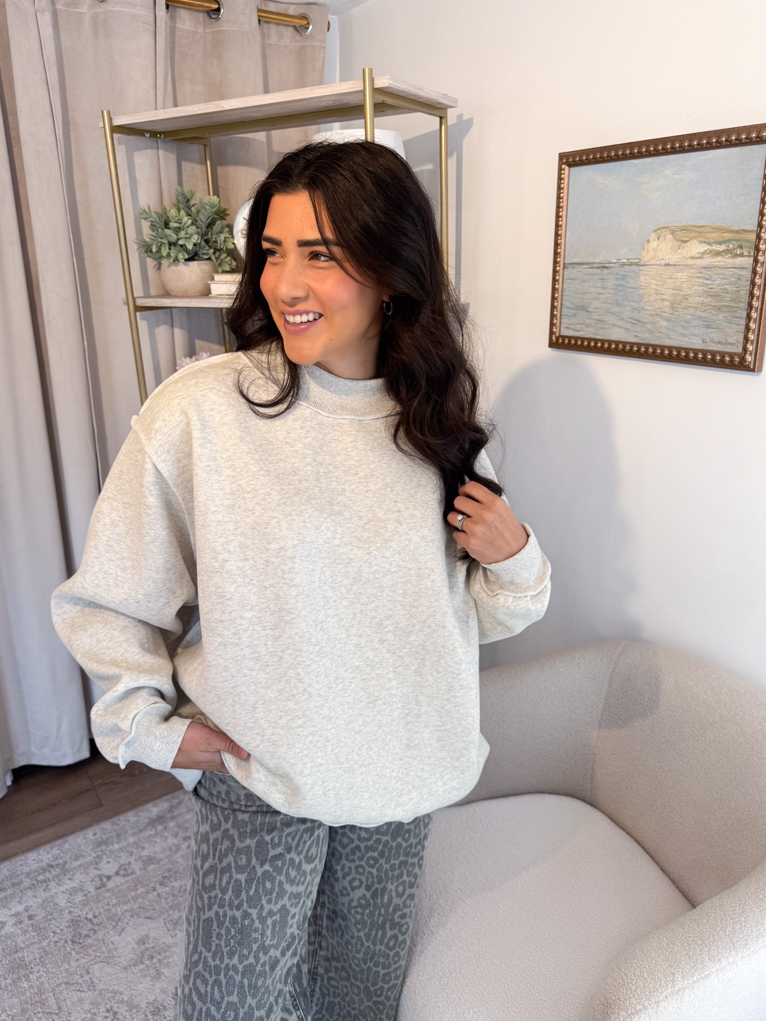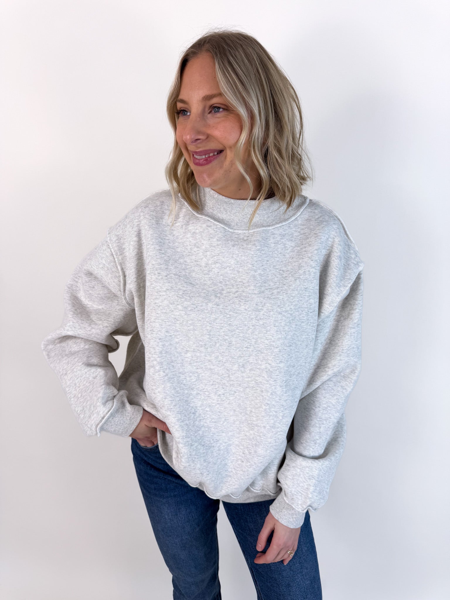 Solid Reversible Mock Neck Pullover- Ash Grey