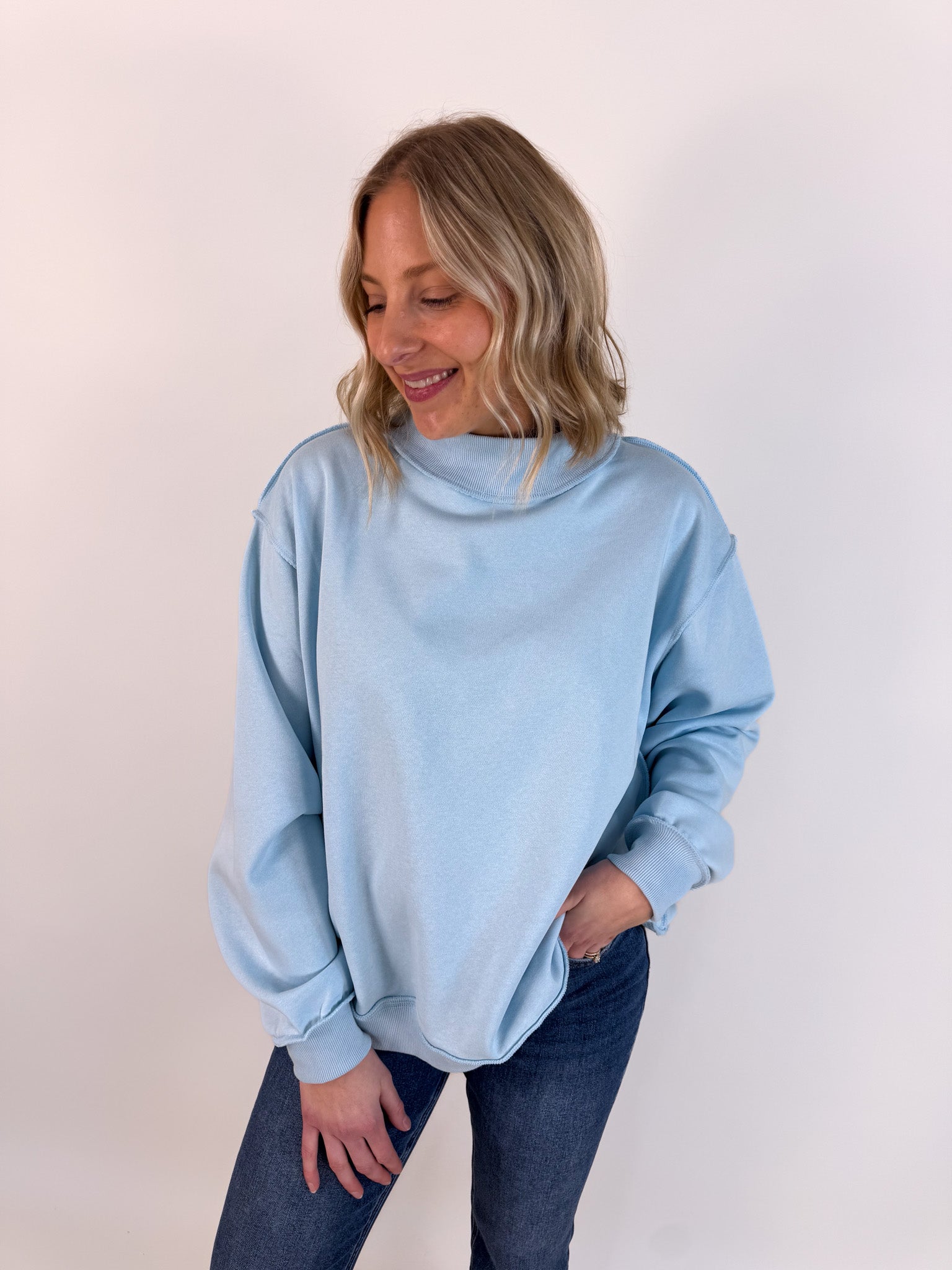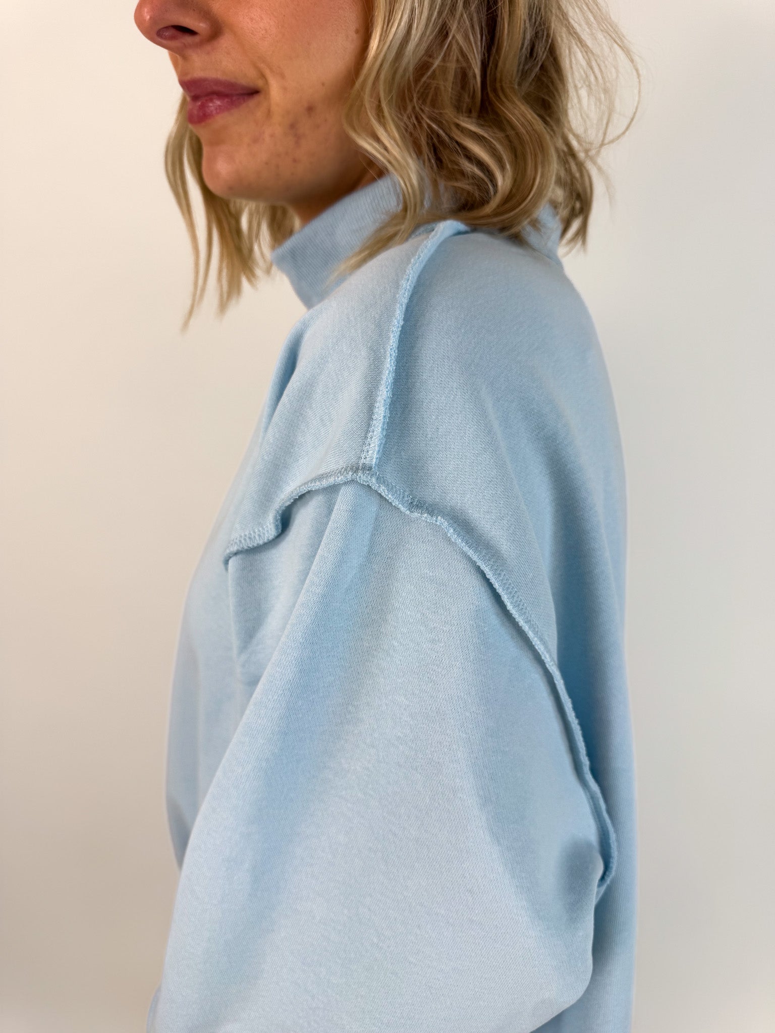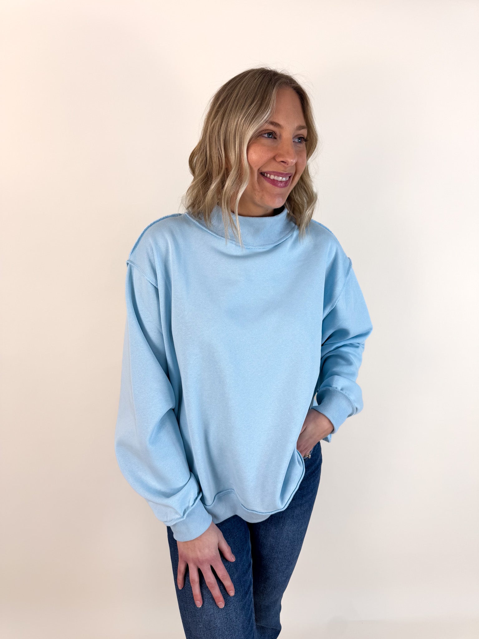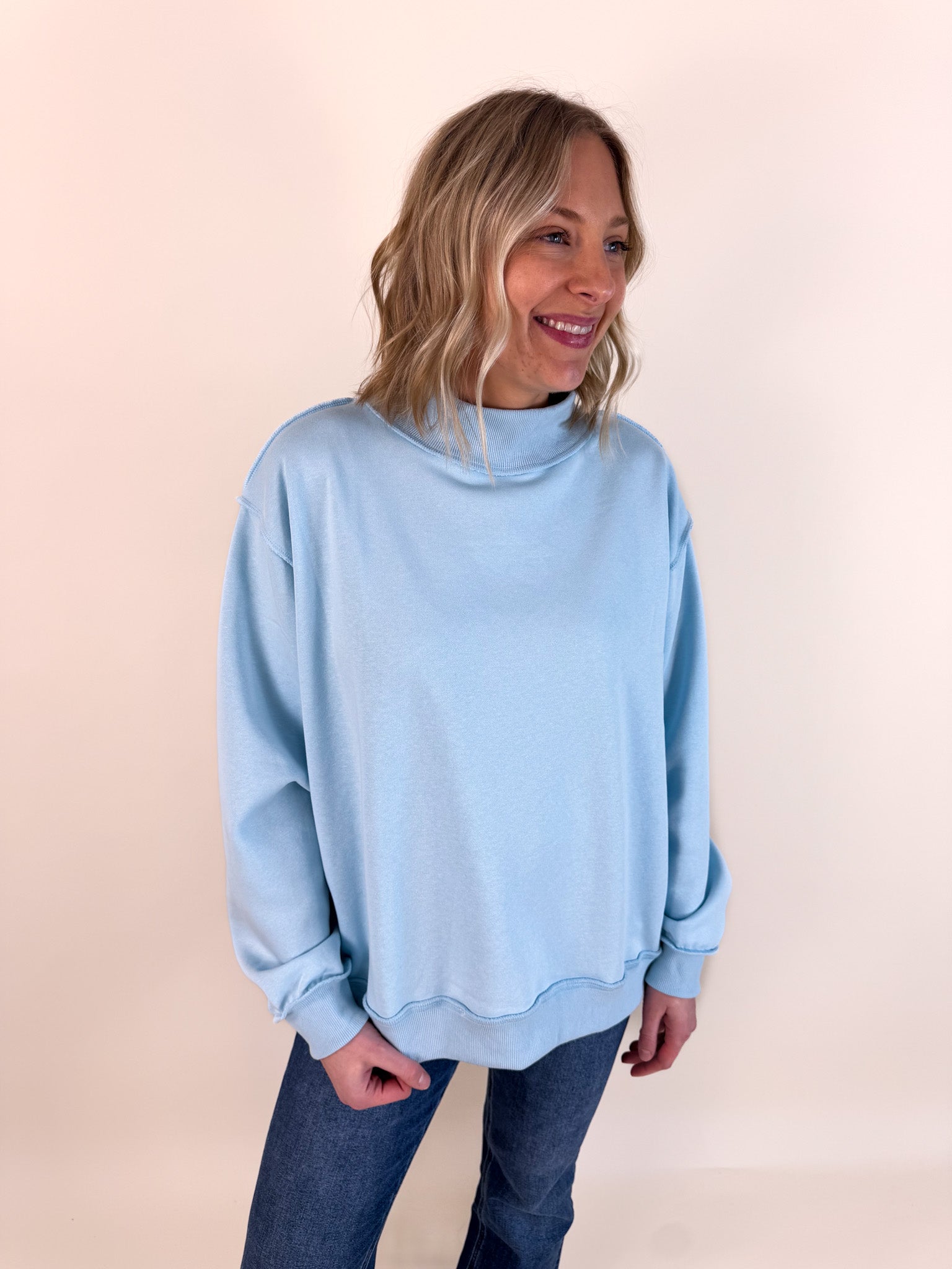 Solid Reversible Mock Neck Pullover- Light Blue